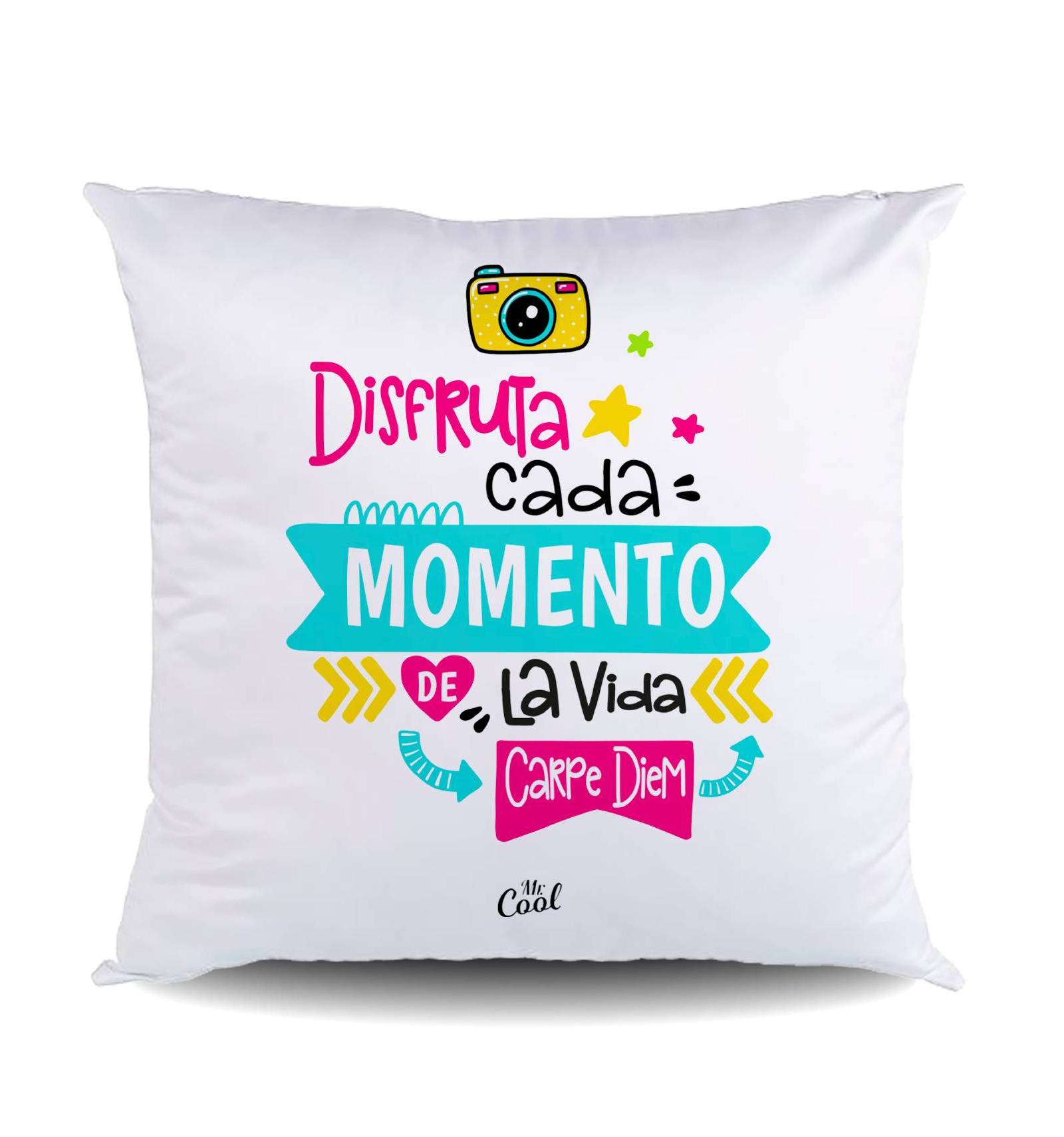 Cojín cuadrado con frases originales marca Mr. Cool, fabricado en España.