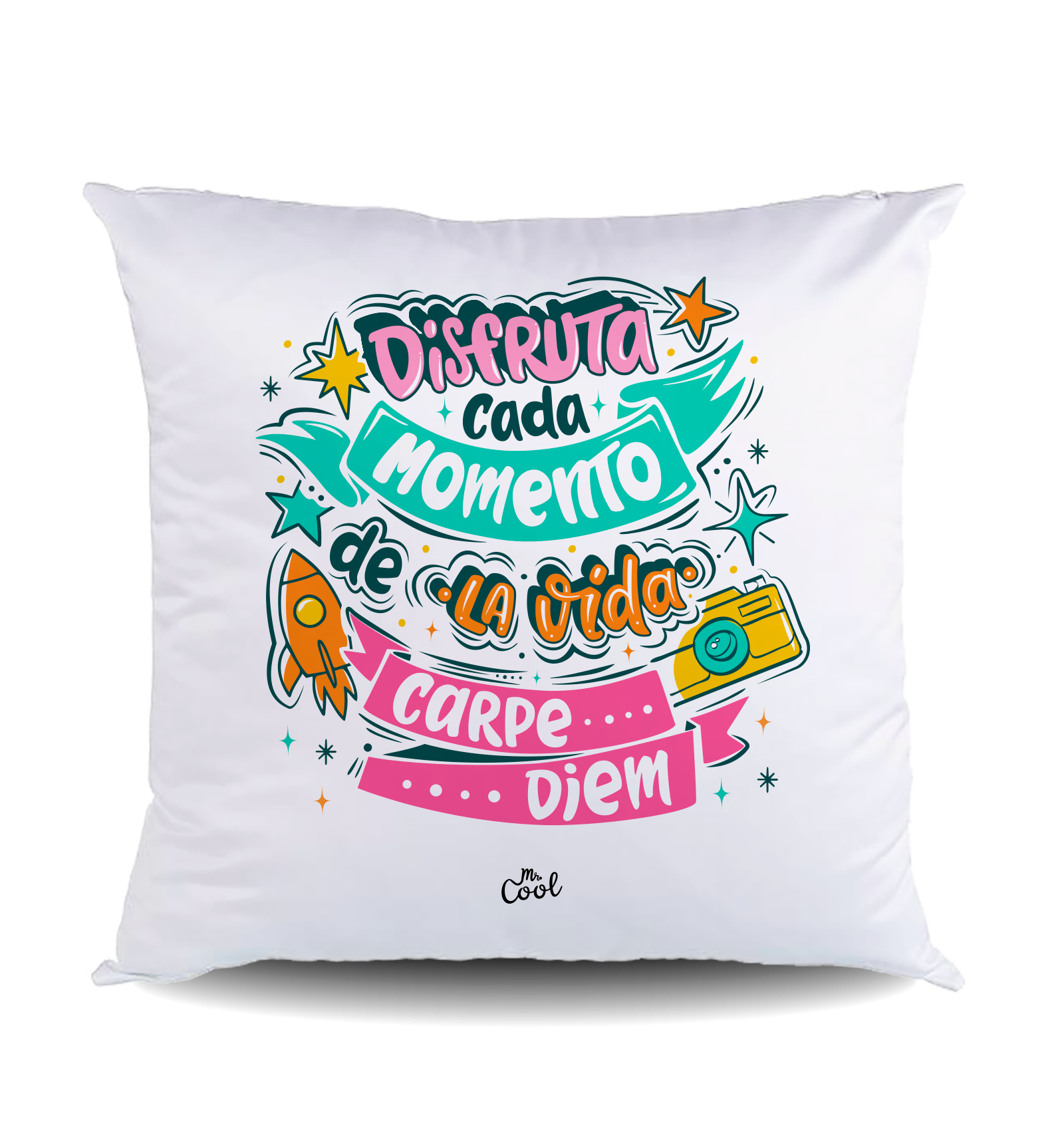 Cojín cuadrado con frases originales marca Mr. Cool, fabricado en España.