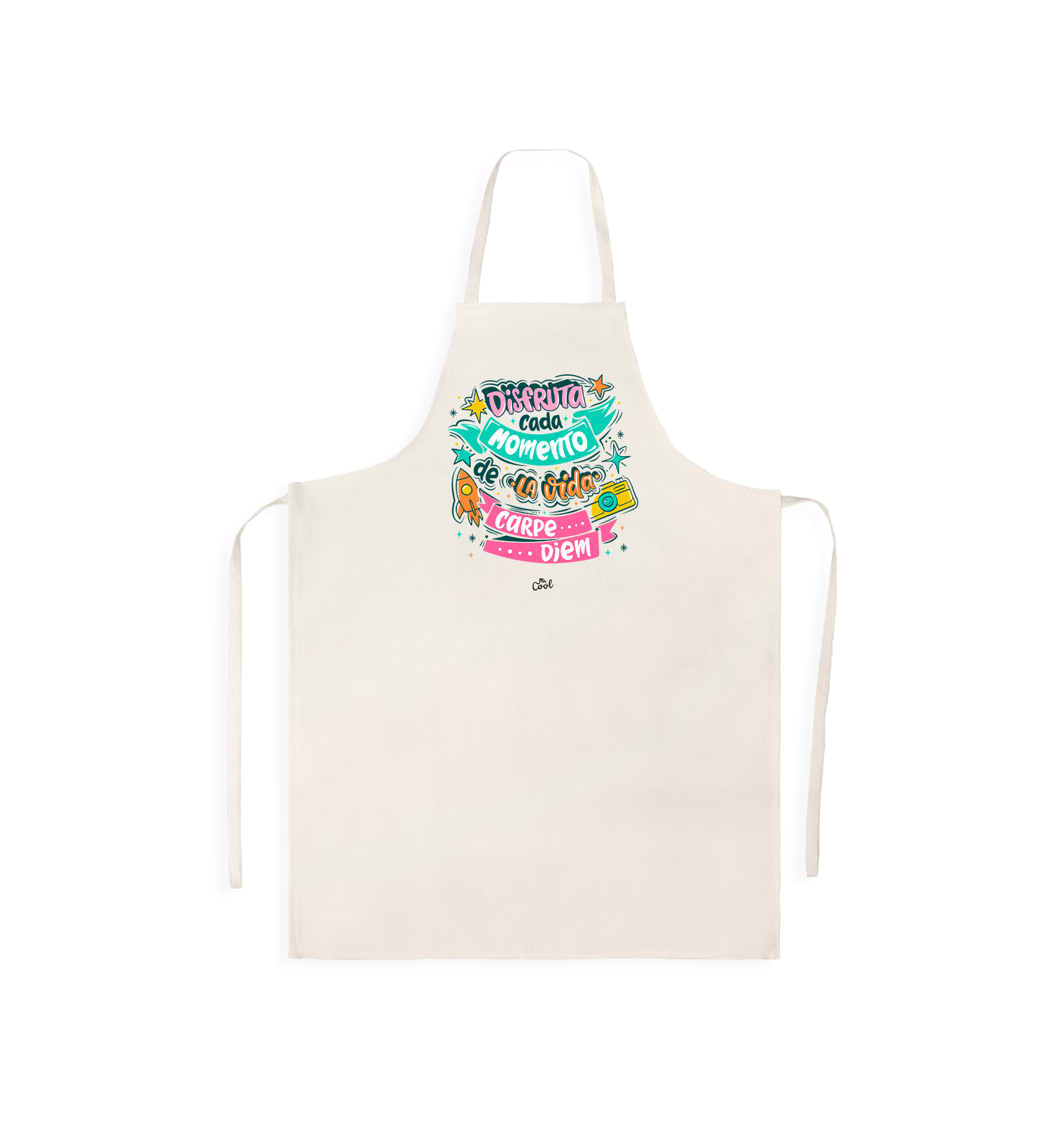 Delantal fabricado en tipo lino con frases originales marca Mr. Cool, fabricado en 100% poliester tipo lino, tacto suave.