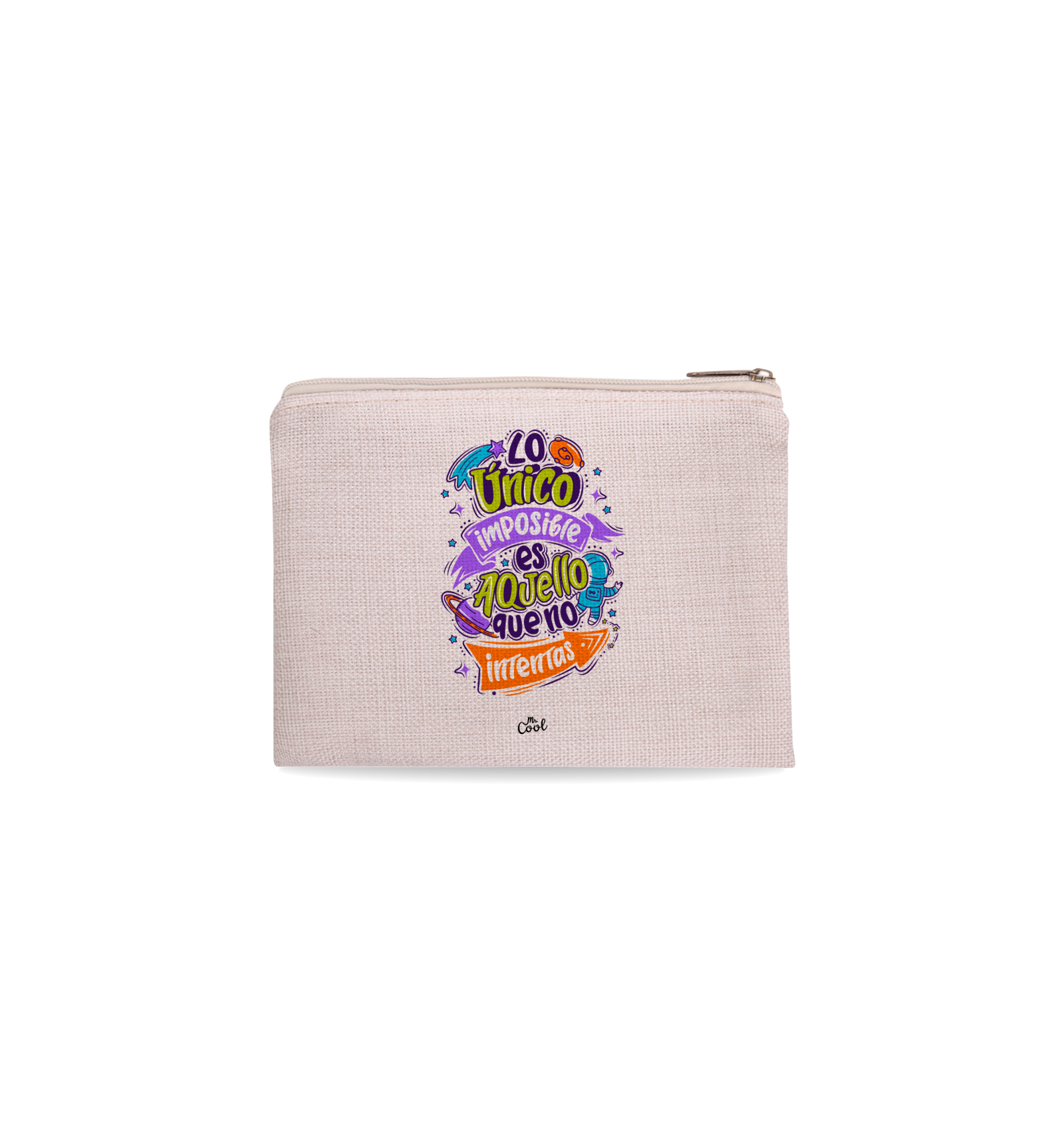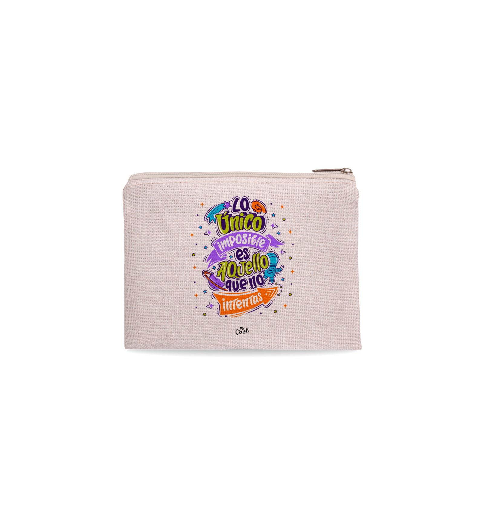 Neceser con frases originales marca Mr. Cool, fabricado en 100% poliester tipo lino, tacto suave.