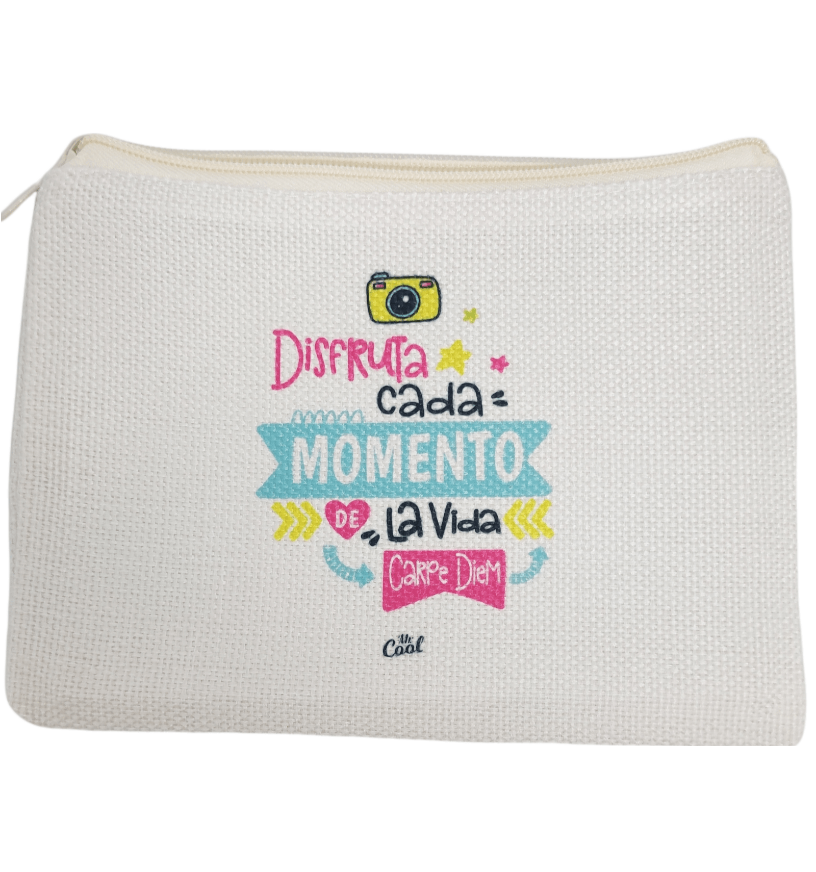 Neceser con frases originales marca Mr. Cool, fabricado en 100% poliester tipo lino, tacto suave.