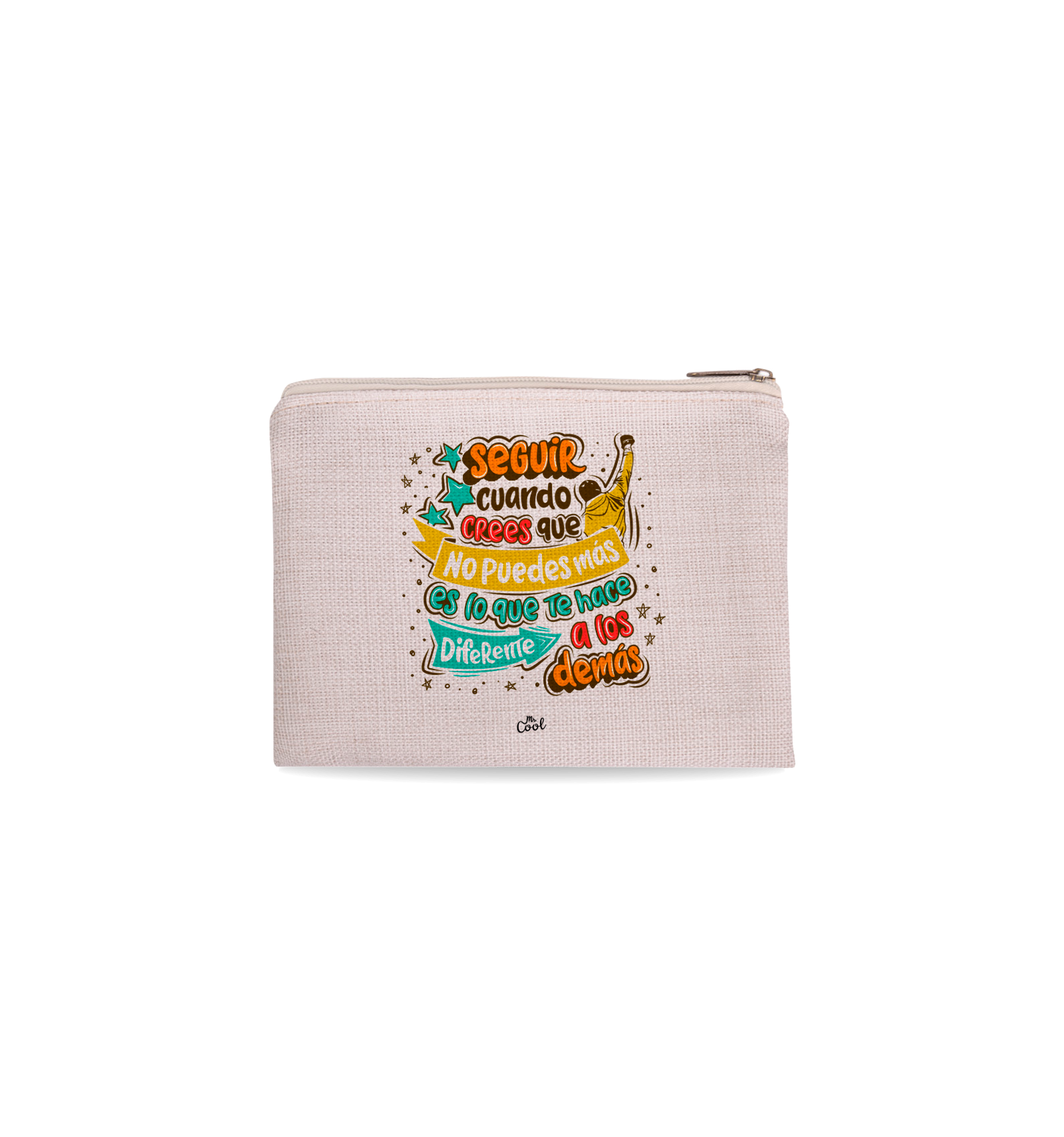 Neceser con frases originales marca Mr. Cool, fabricado en 100% poliester tipo lino, tacto suave.