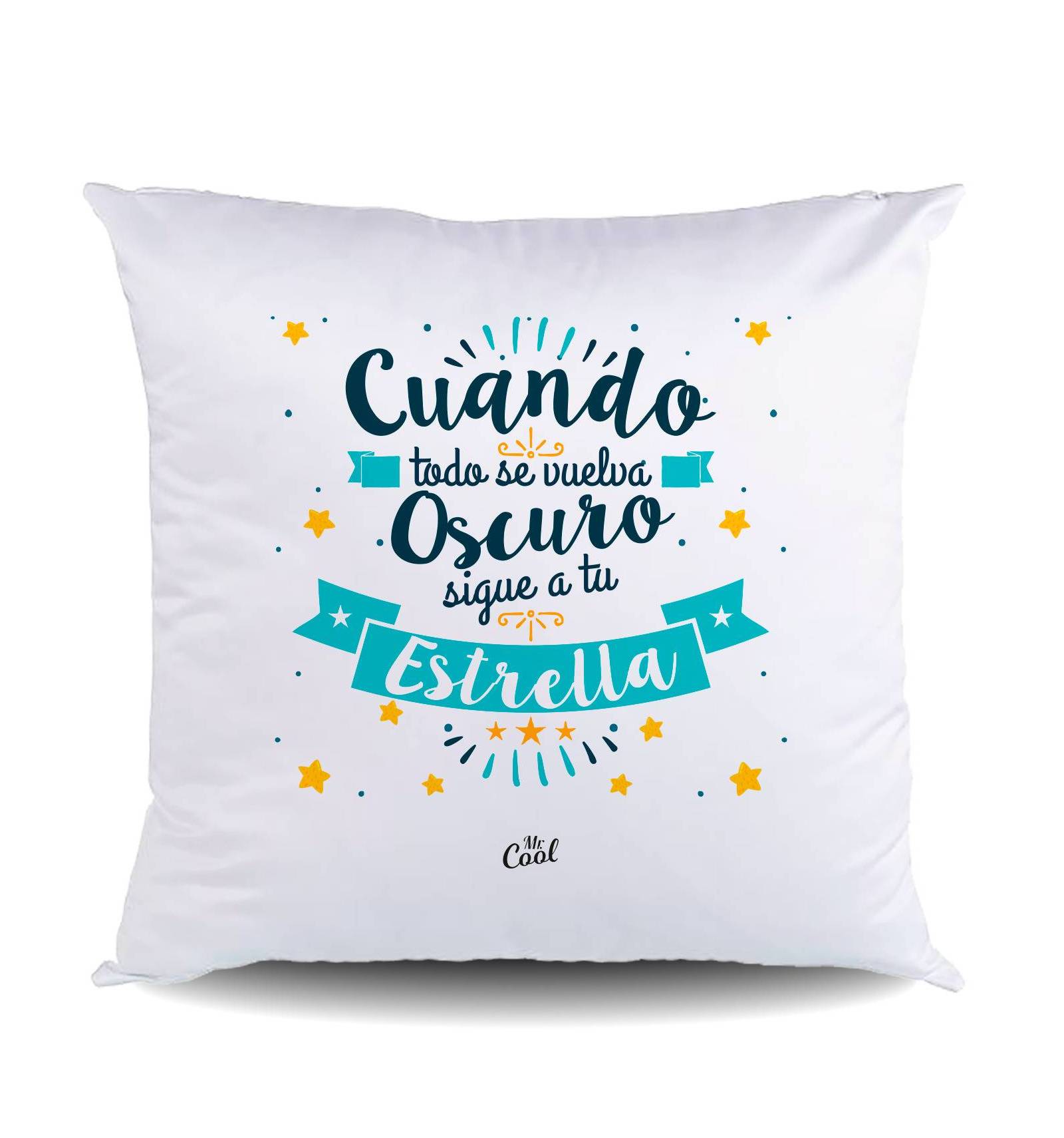 Cojín cuadrado con frases originales marca Mr. Cool, fabricado en España.