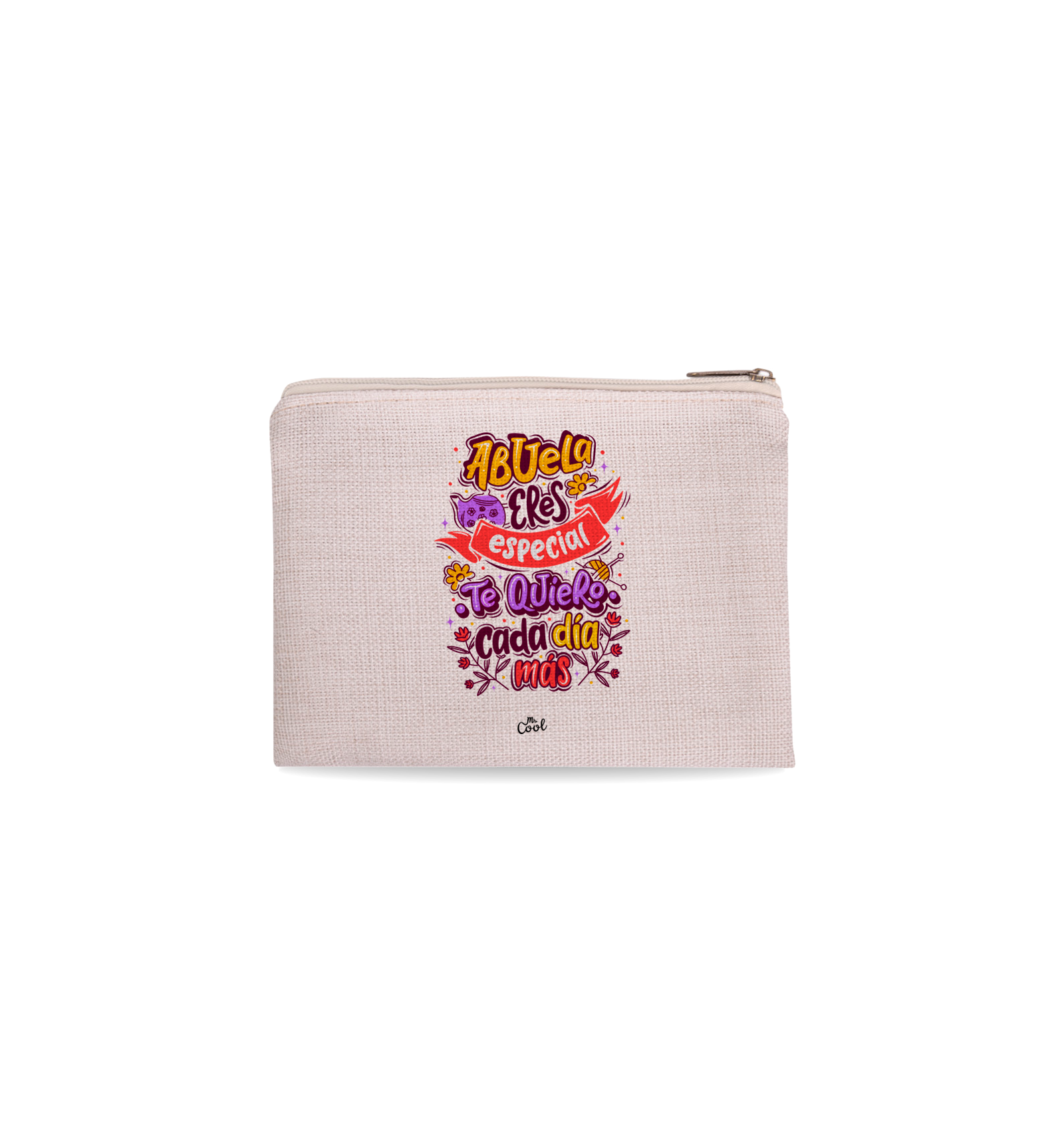Neceser con frases originales marca Mr. Cool, fabricado en 100% poliester tipo lino, tacto suave.