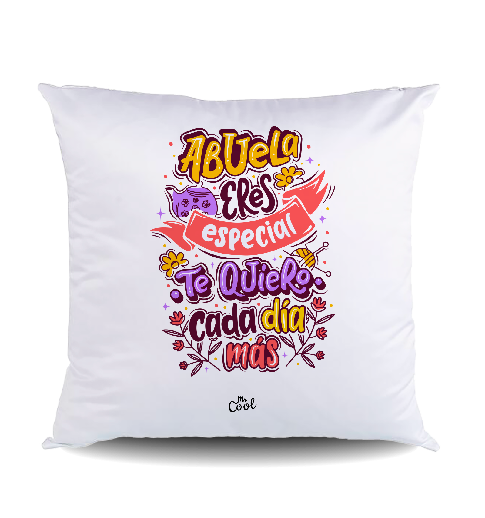 Cojín cuadrado con frases originales marca Mr. Cool, fabricado en España.