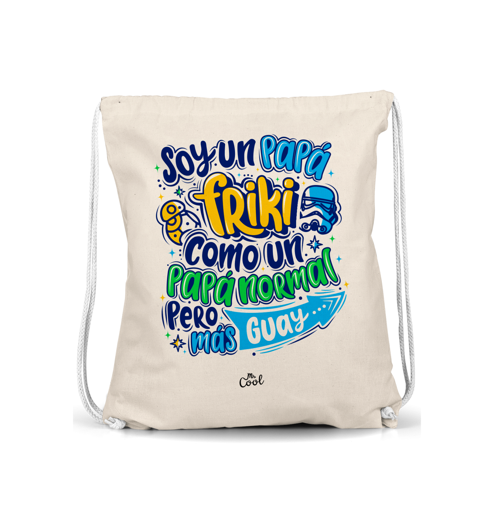 Mochila Saco con frases originales marca Mr. Cool, fabricado en 100% poliester tipo lino, tacto suave.