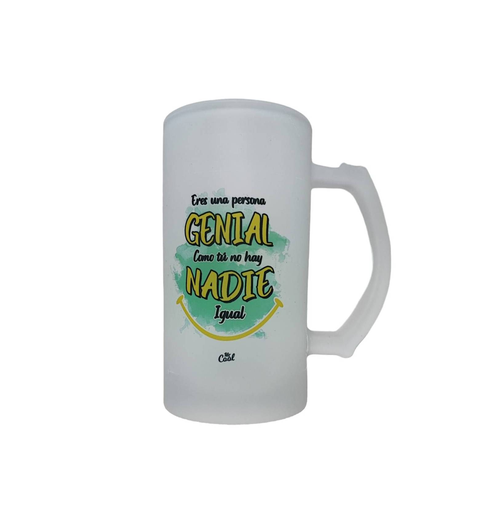Jarra cristal opaco o esmerilado con frases originales marca Mr. Cool, apta para microondas y lavavajillas. Y podrás meter la taza sin liquidos en el congelador para tener bebidas muy frias.