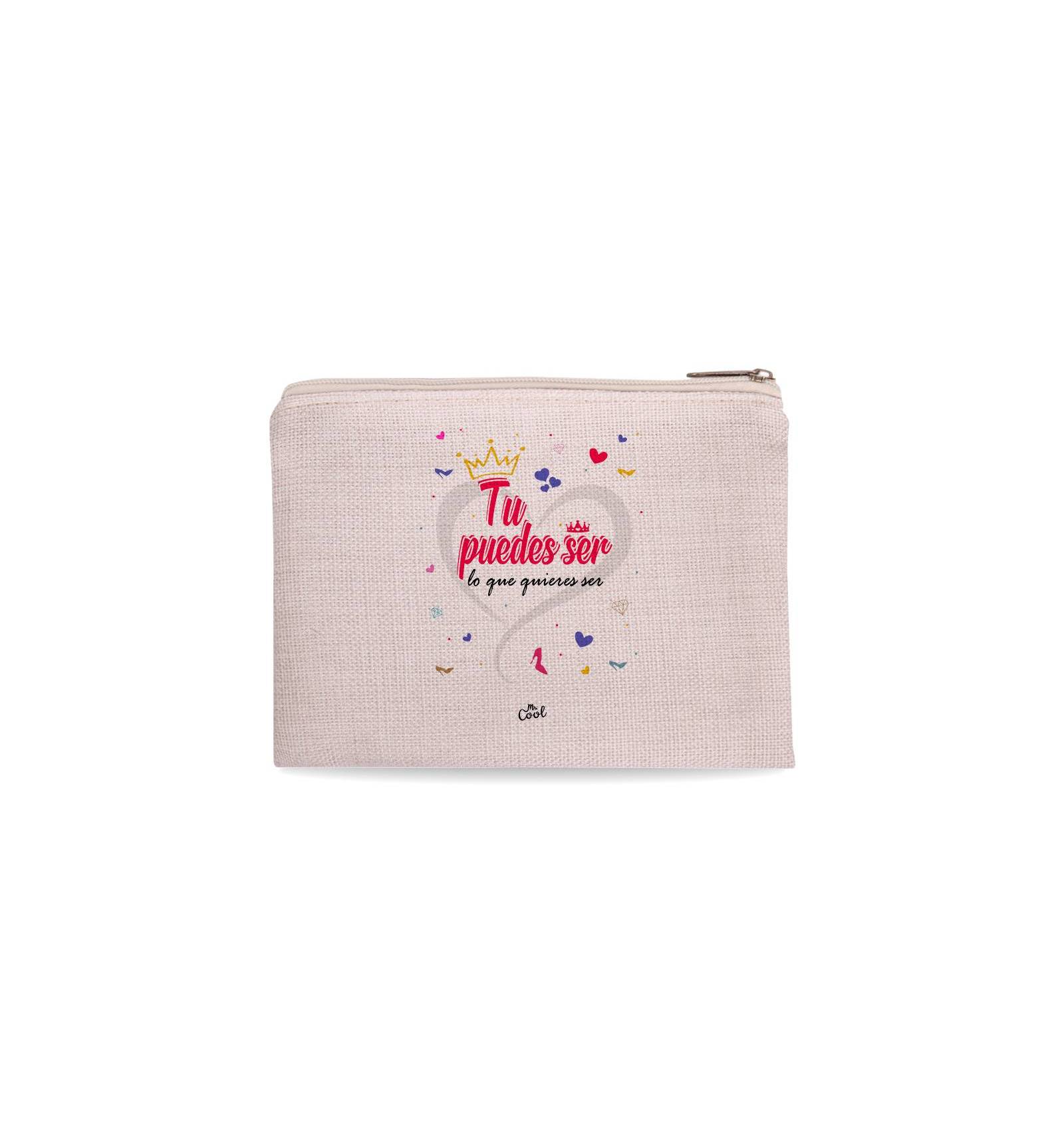 Neceser con frases de peliculas marca Mr. Cool, fabricado en 100% poliester tipo lino, tacto suave.