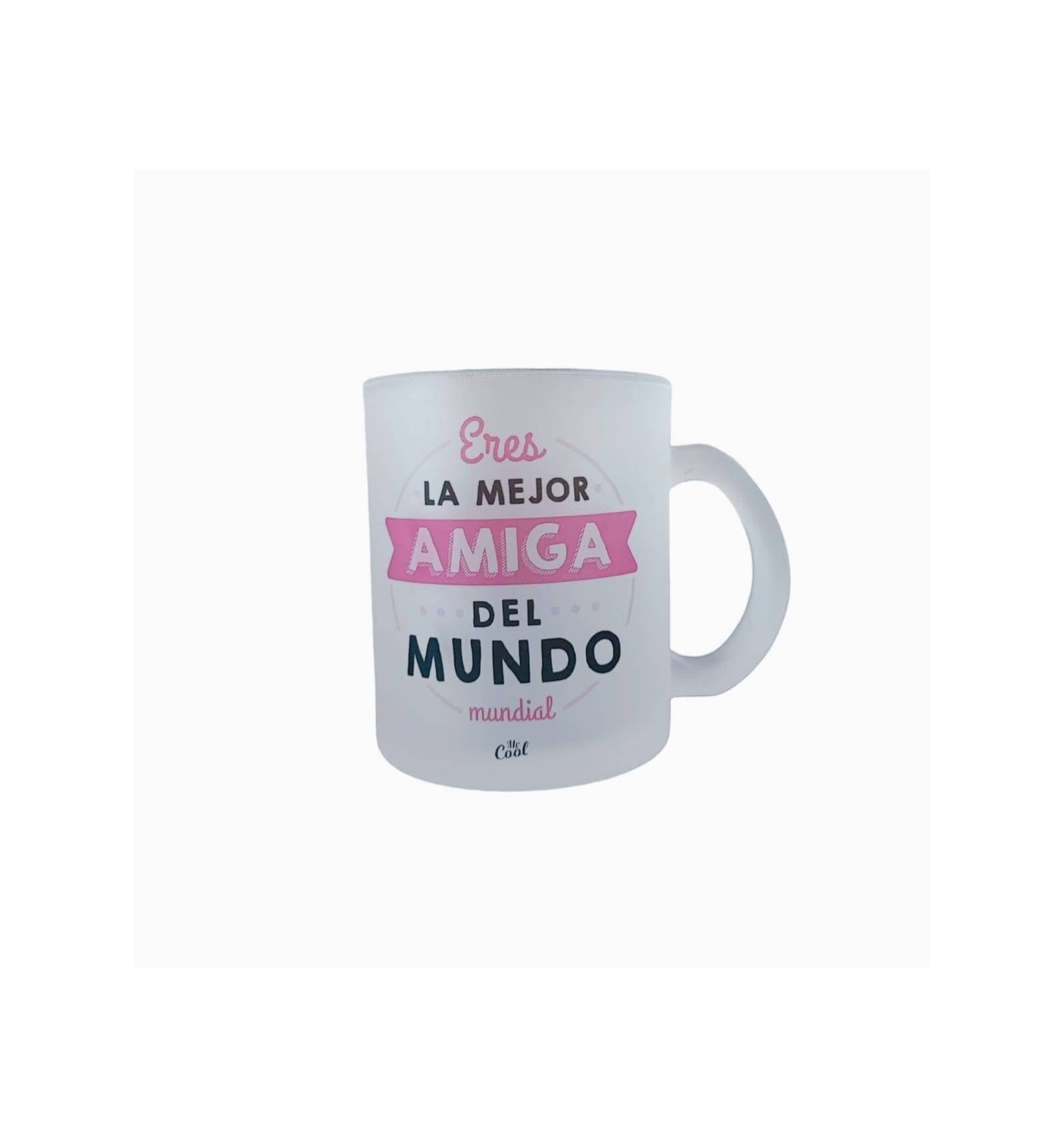 Taza cristal opaco o esmerilado con frases originales marca Mr. Cool, apta para microondas y lavavajillas. Y podrás meter la taza sin liquidos en el congelador para tener bebidas muy frias.