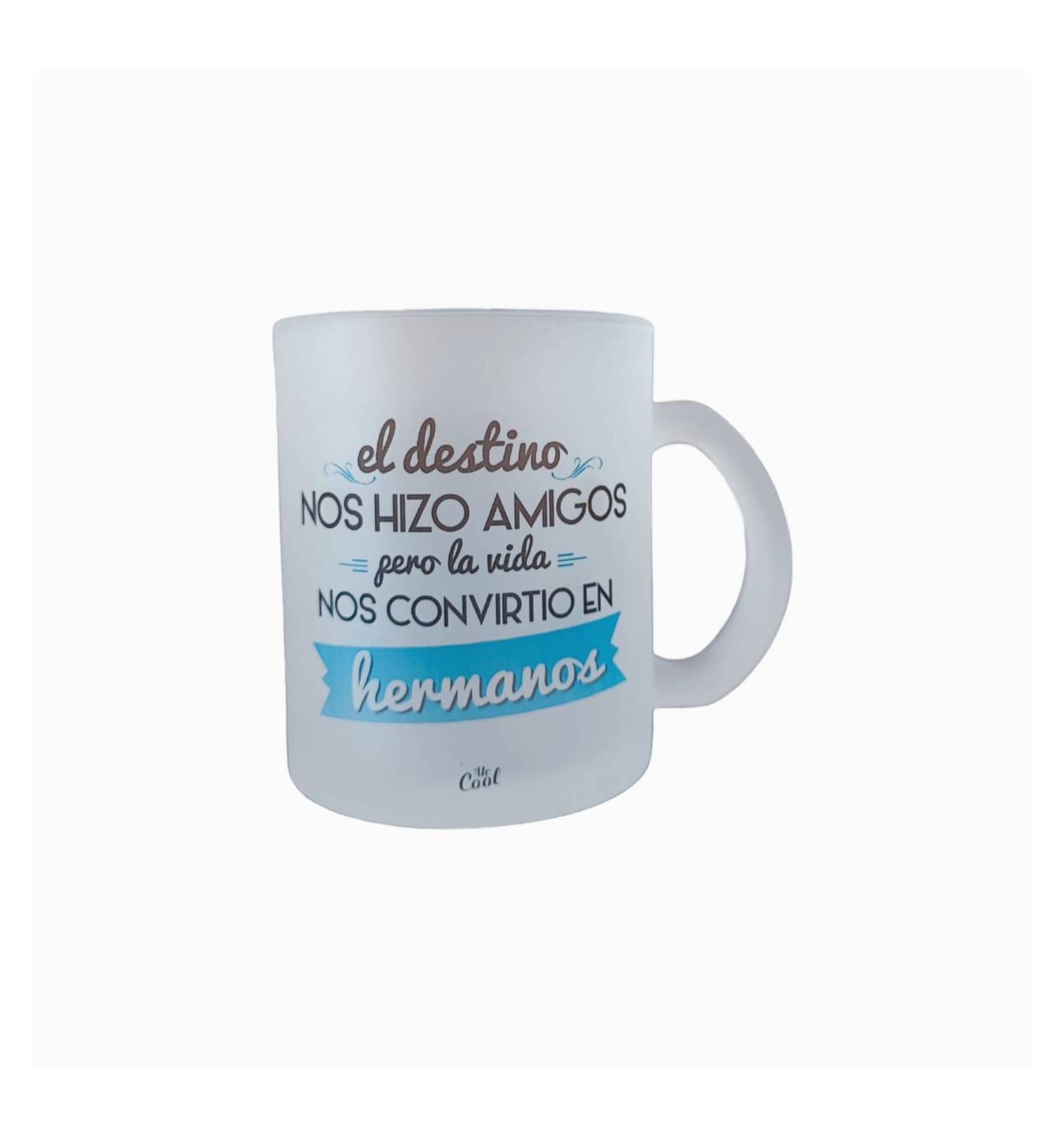 Taza cristal opaco o esmerilado con frases originales marca Mr. Cool, apta para microondas y lavavajillas. Y podrás meter la taza sin liquidos en el congelador para tener bebidas muy frias.