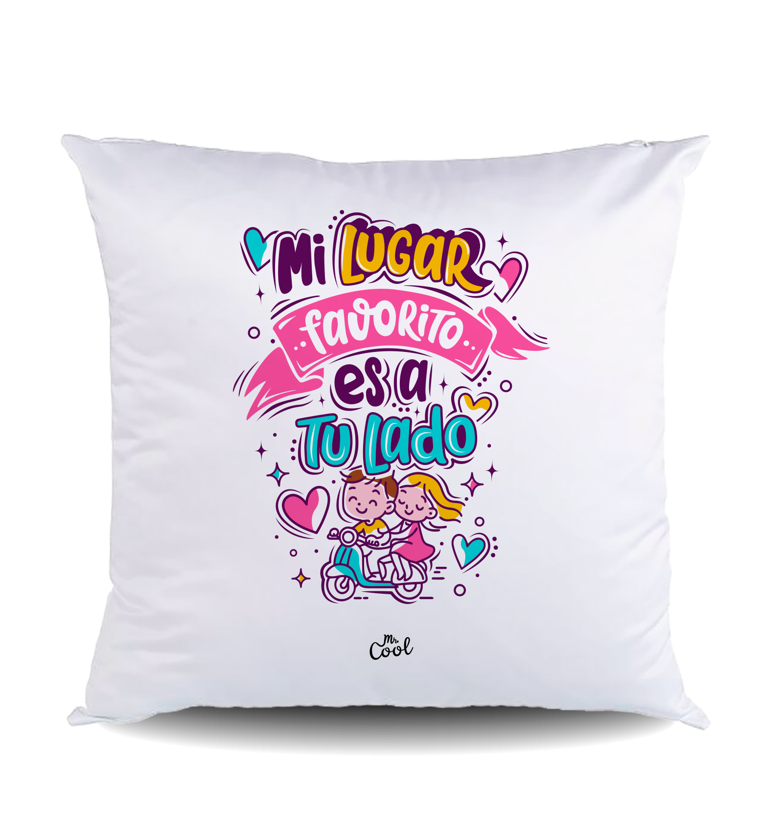 Cojín cuadrado con frases originales marca Mr. Cool, fabricado en España.