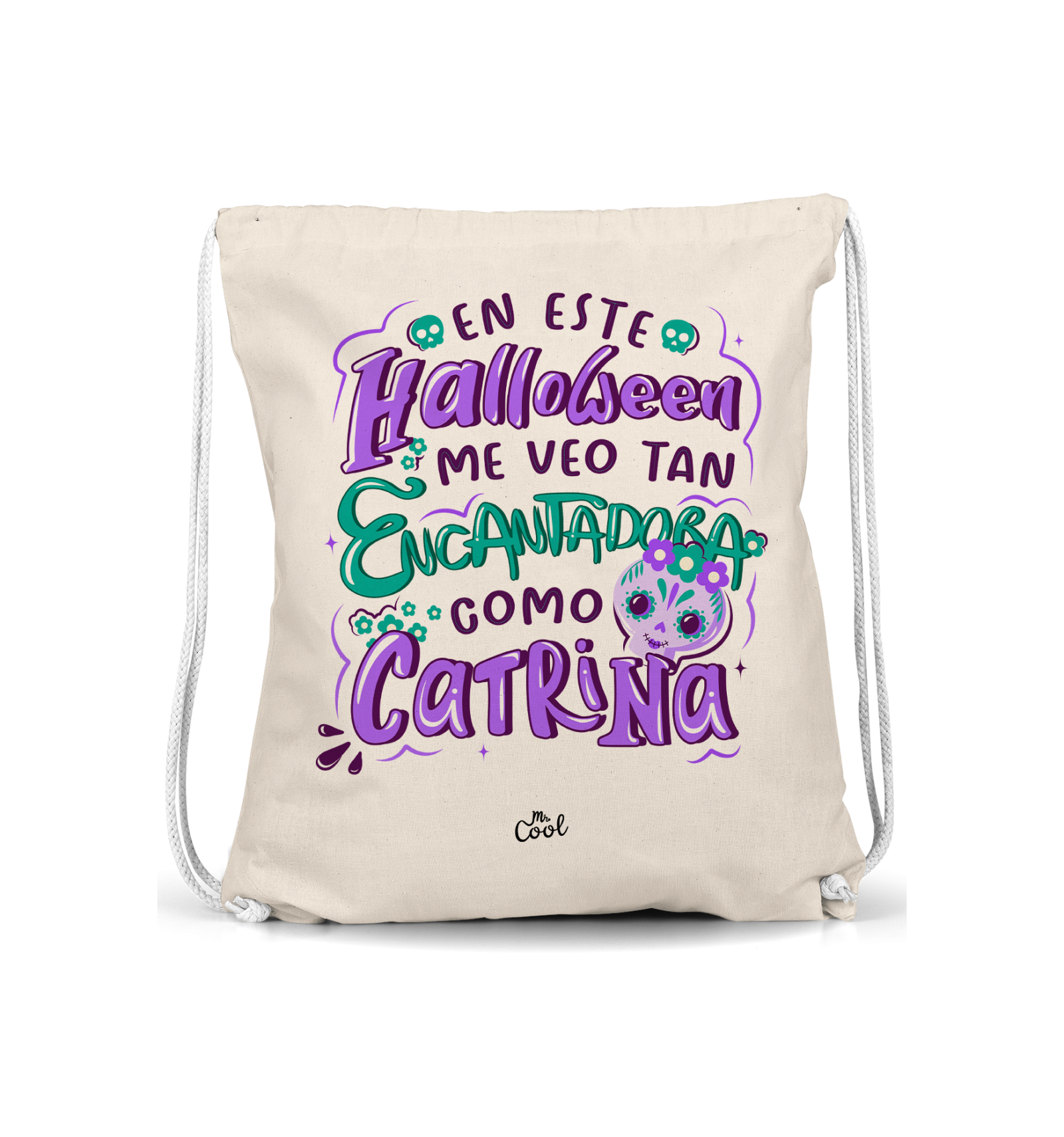 Mochila Saco con frases originales marca Mr. Cool, fabricado en 100% poliester tipo lino, tacto suave.