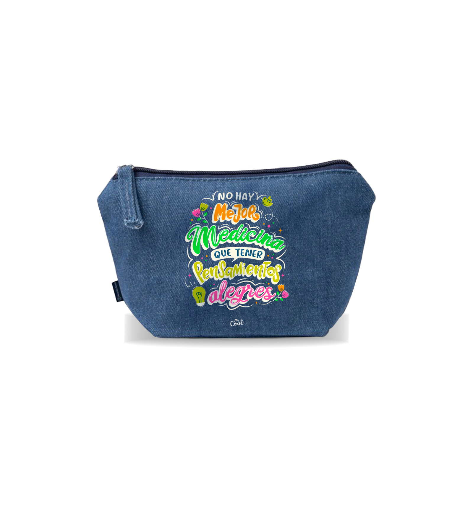 Neceser con frases originales marca Mr. Cool, fabricado en vaquero reciclado de 320 gr/m², tacto suave.