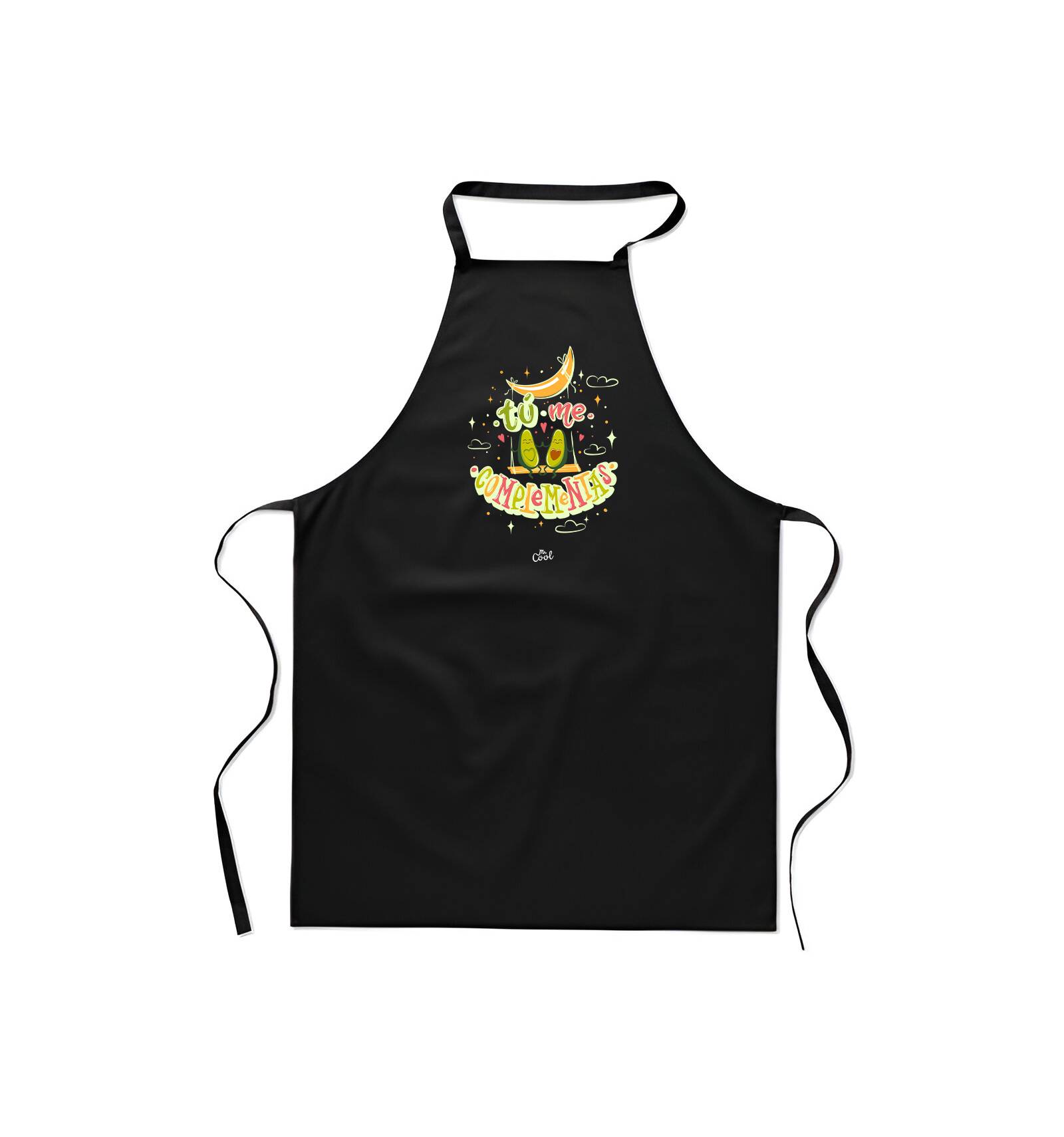 Delantal negro con frases originales marca Mr. Cool, fabricado en 80% poliester 20% algodon.
