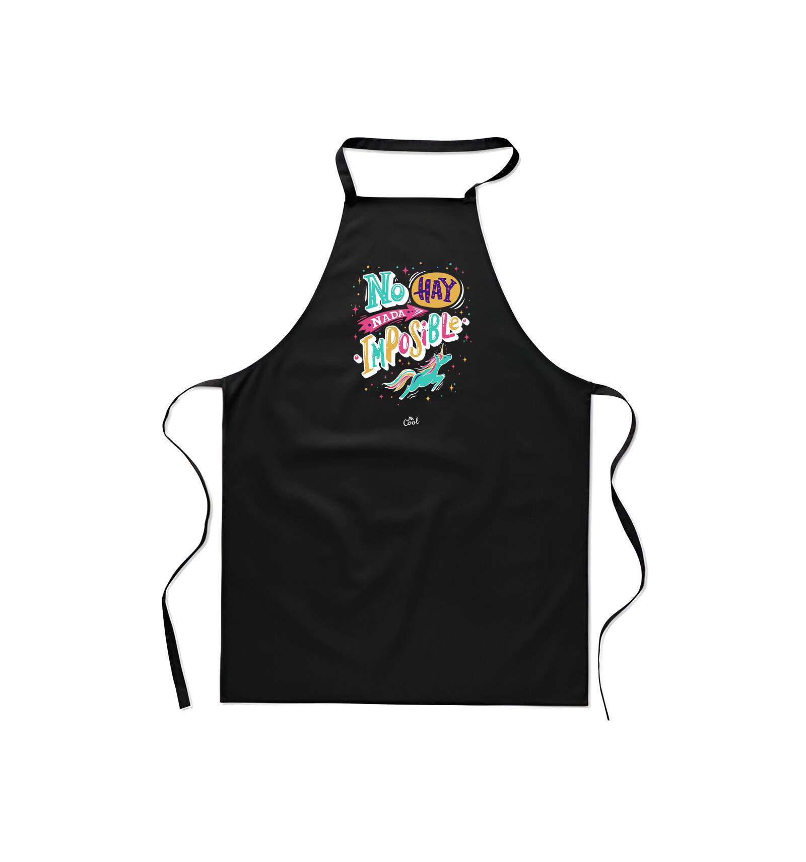 Delantal negro con frases originales marca Mr. Cool, fabricado en 80% poliester 20% algodon.