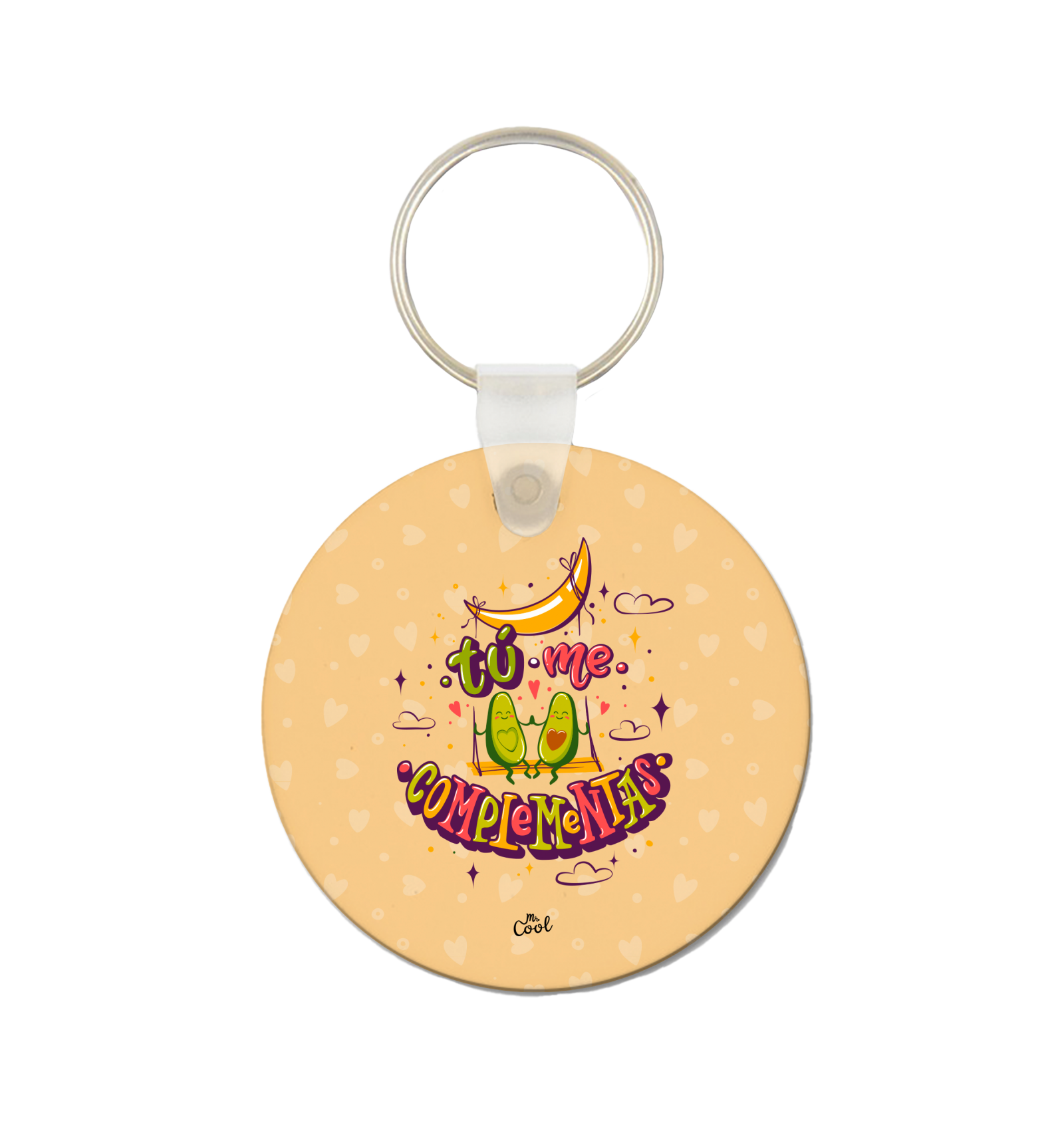 Pack de 5 llaveros circulares con frases originales marca Mr. Cool, fabricado en España.
