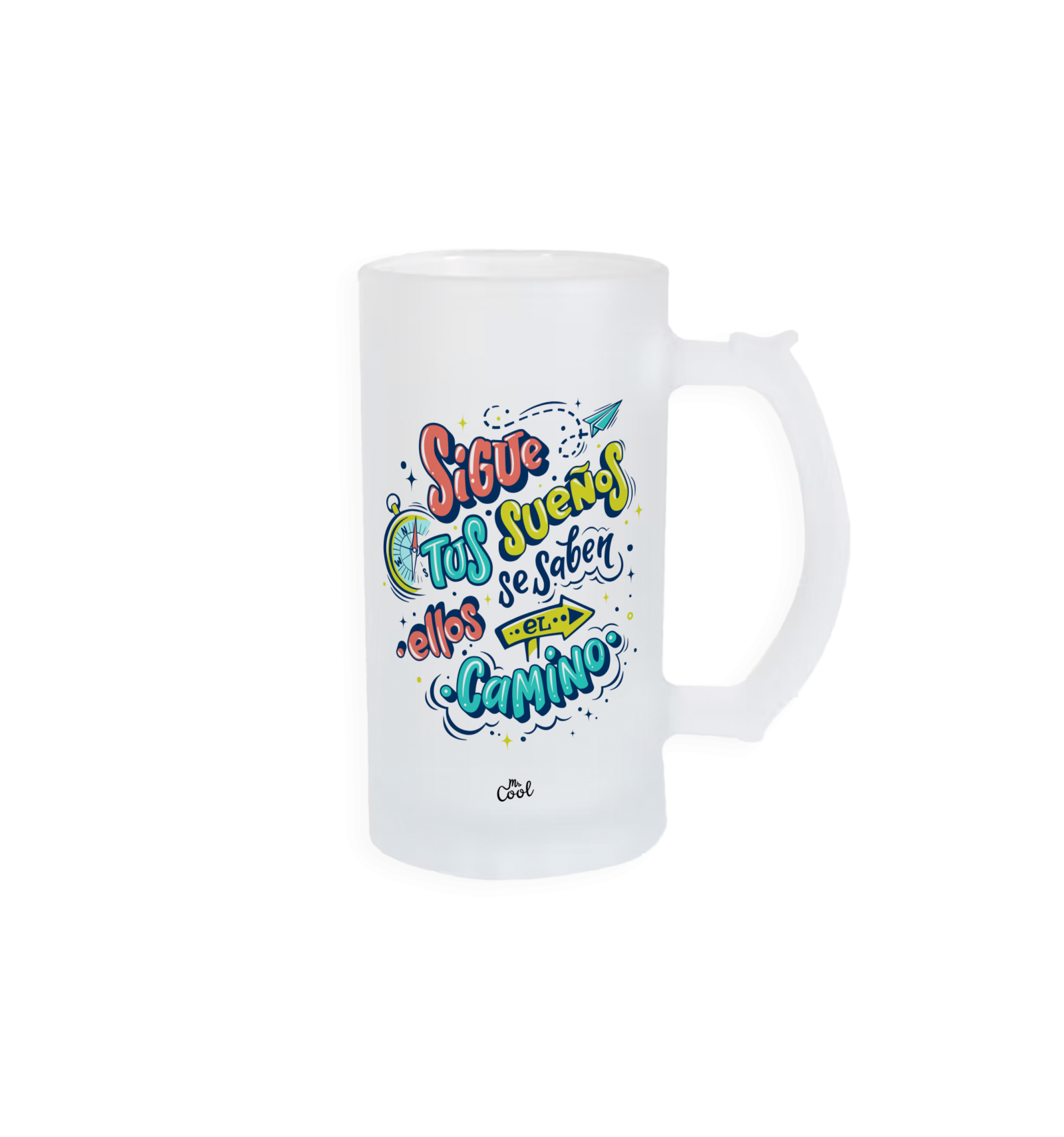 Jarra cristal opaco o esmerilado con frases originales marca Mr. Cool, apta para microondas y lavavajillas. Y podrás meter la taza sin liquidos en el congelador para tener bebidas muy frias.