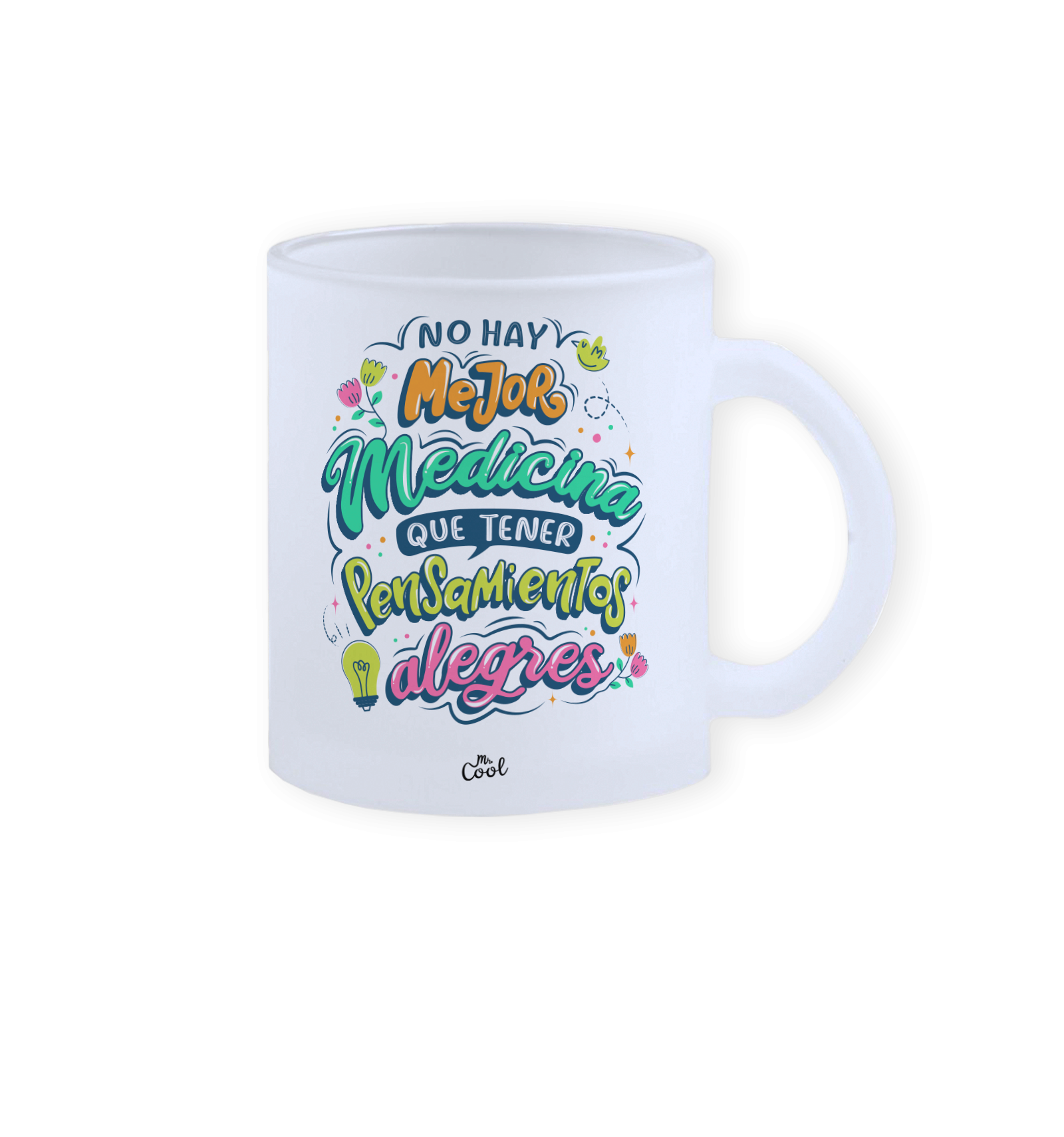Taza cristal opaco o esmerilado con frases originales marca Mr. Cool, apta para microondas y lavavajillas. Y podrás meter la taza sin liquidos en el congelador para tener bebidas muy frias.