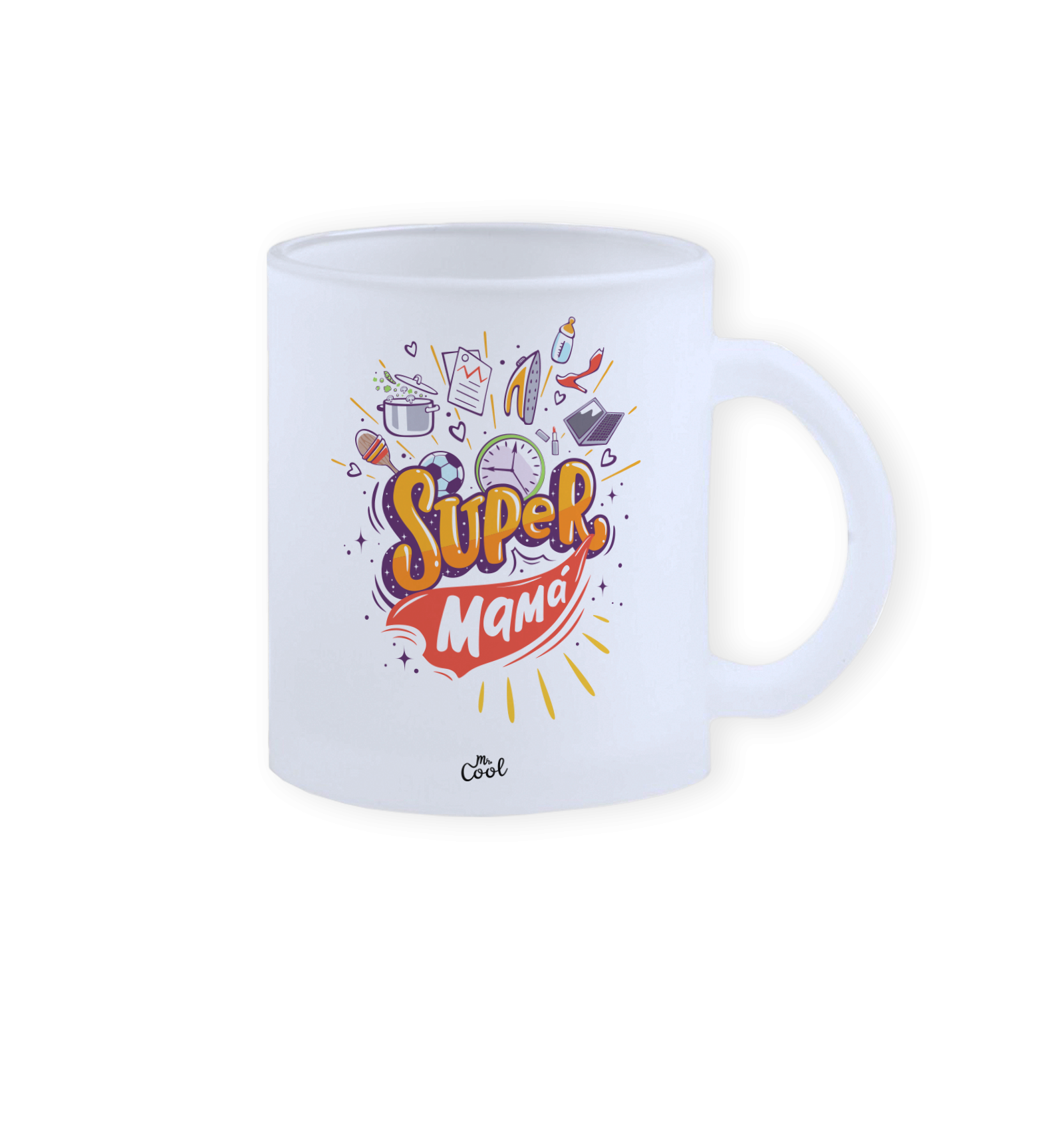 Taza cristal opaco o esmerilado con frases originales marca Mr. Cool, apta para microondas y lavavajillas. Y podrás meter la taza sin liquidos en el congelador para tener bebidas muy frias.