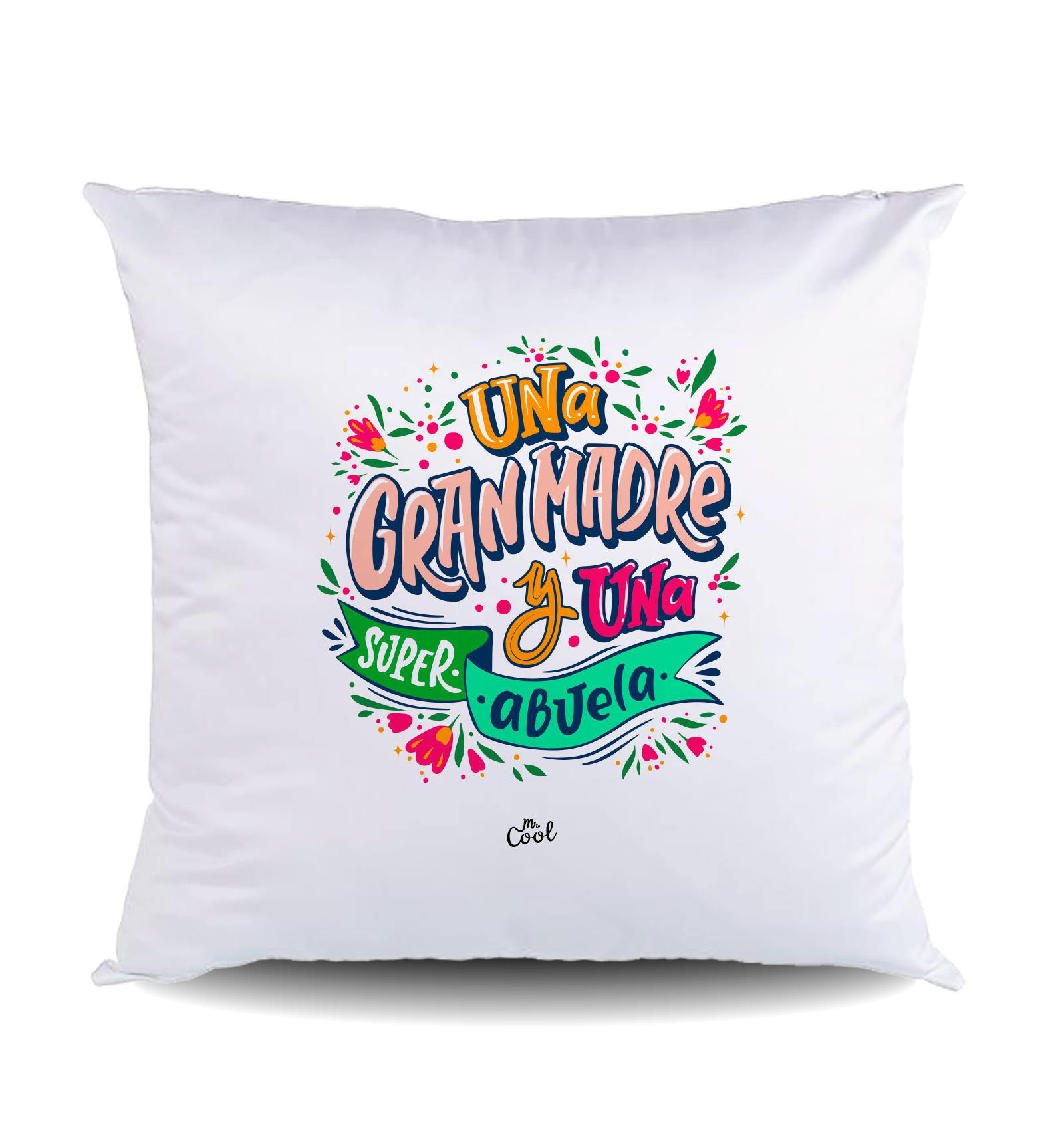 Cojín cuadrado con frases originales marca Mr. Cool, fabricado en España.