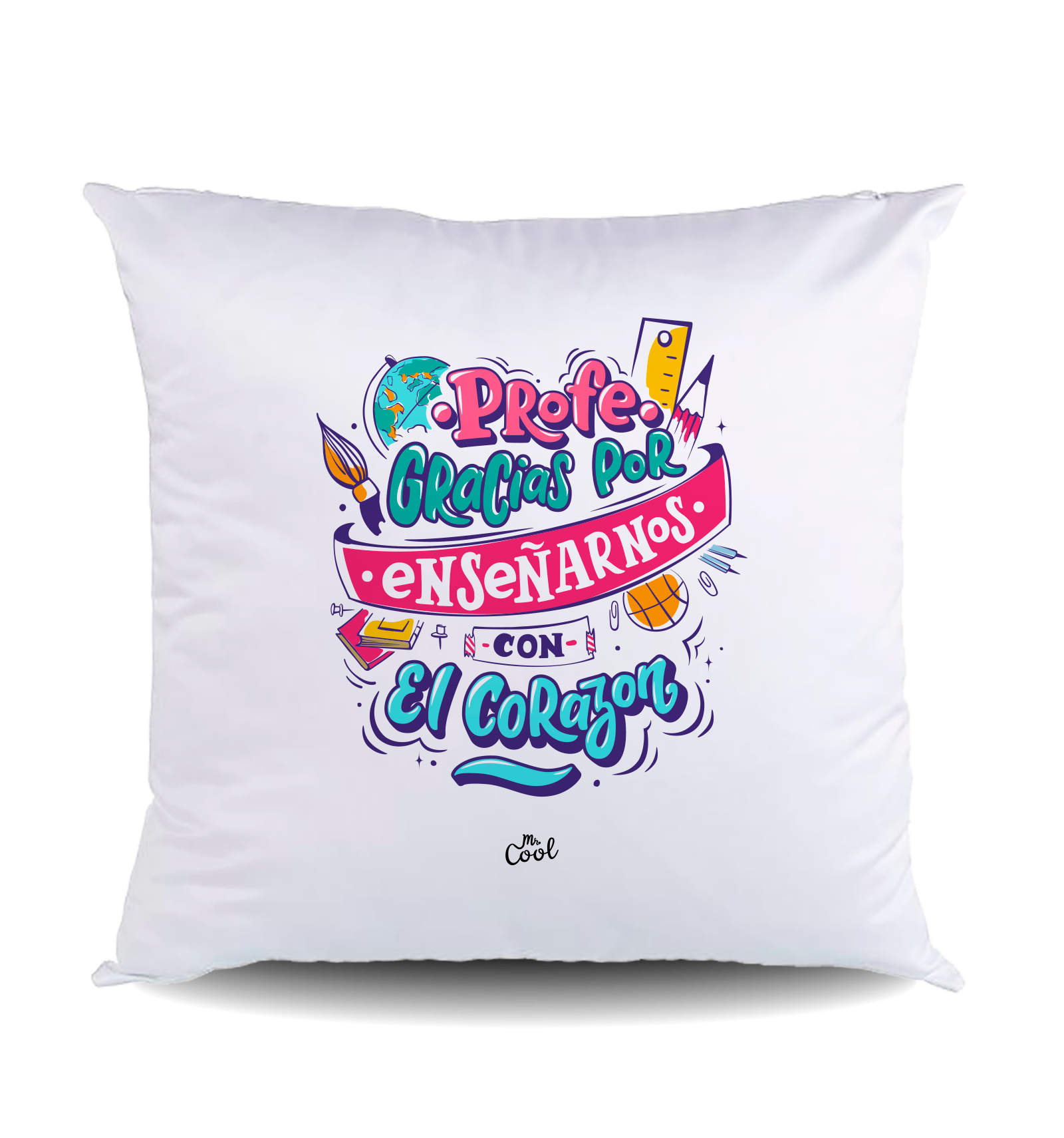 Cojín cuadrado con frases originales marca Mr. Cool, fabricado en España.