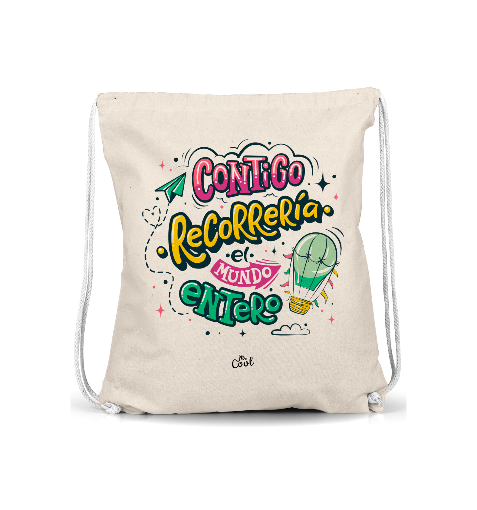 Mochila Saco con frases originales marca Mr. Cool, fabricado en 100% poliester tipo lino, tacto suave.
