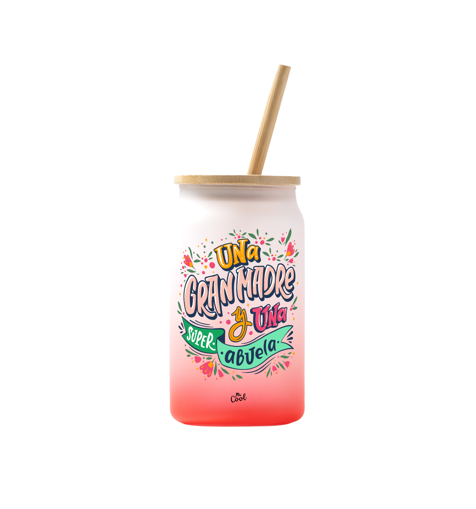 Vaso de cristal degradado de 350ml con frases marca Mr. Cool.