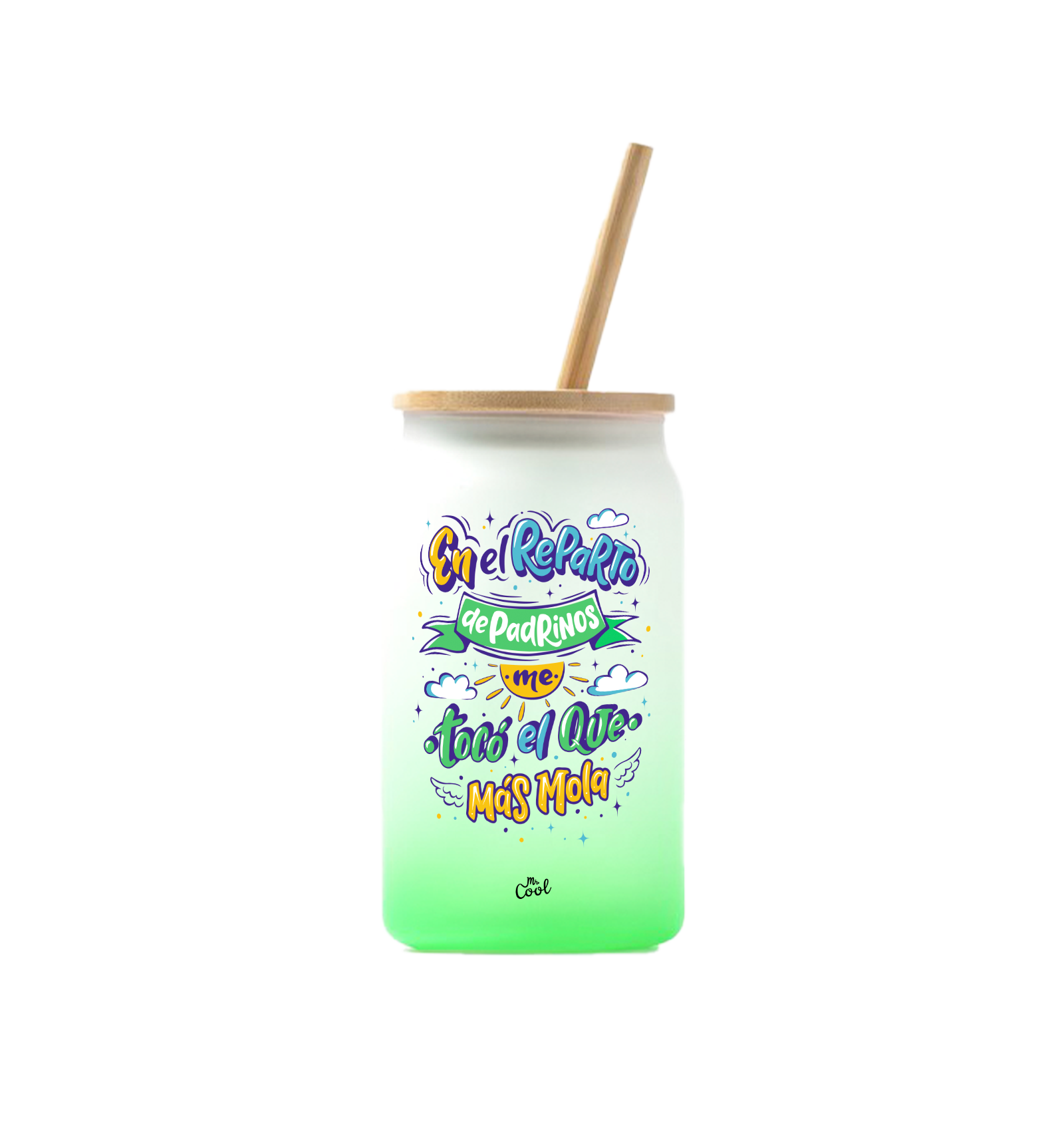 Vaso de cristal degradado de 350ml con frases marca Mr. Cool.