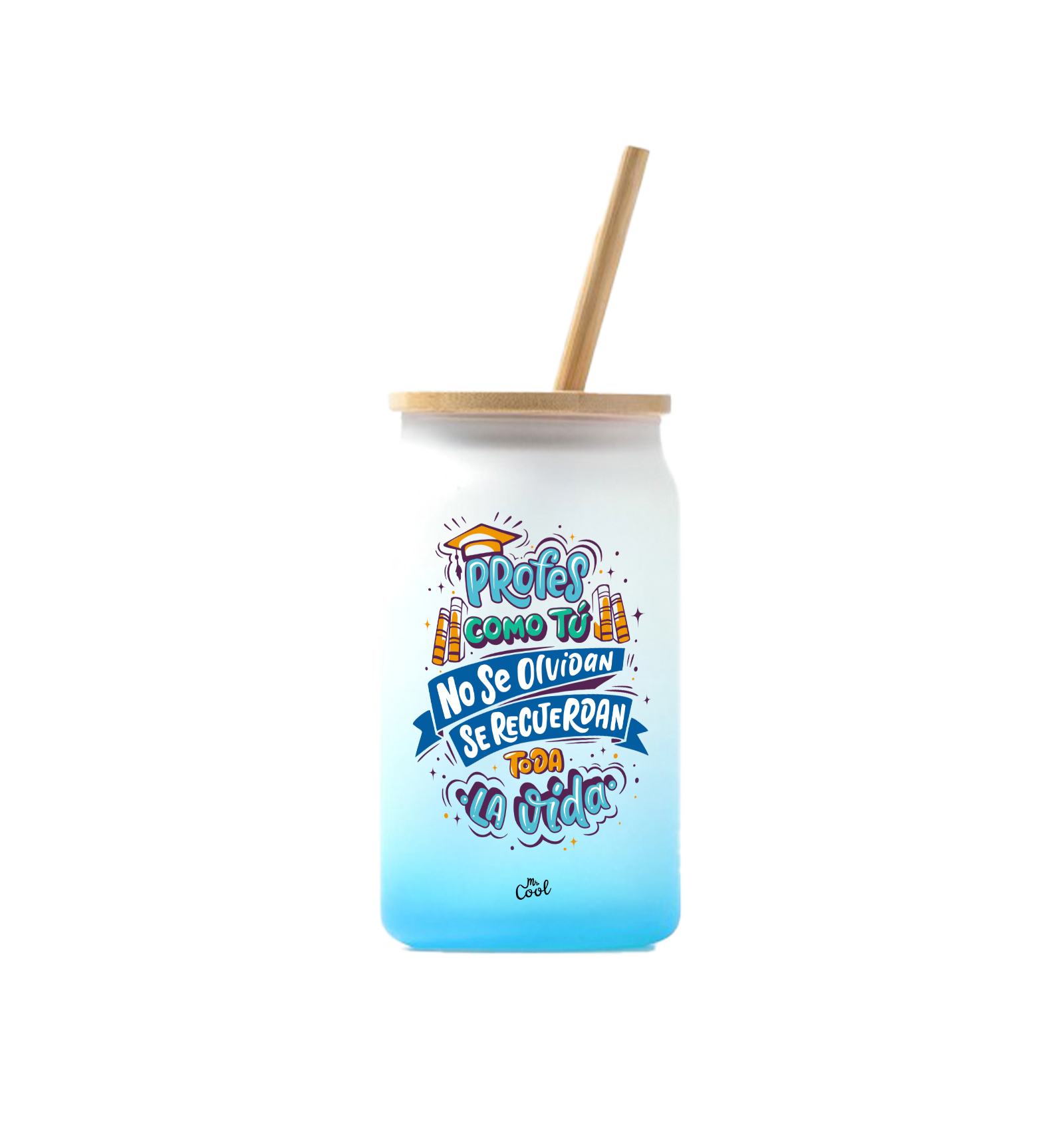 Vaso de cristal degradado de 350ml con frases marca Mr. Cool.