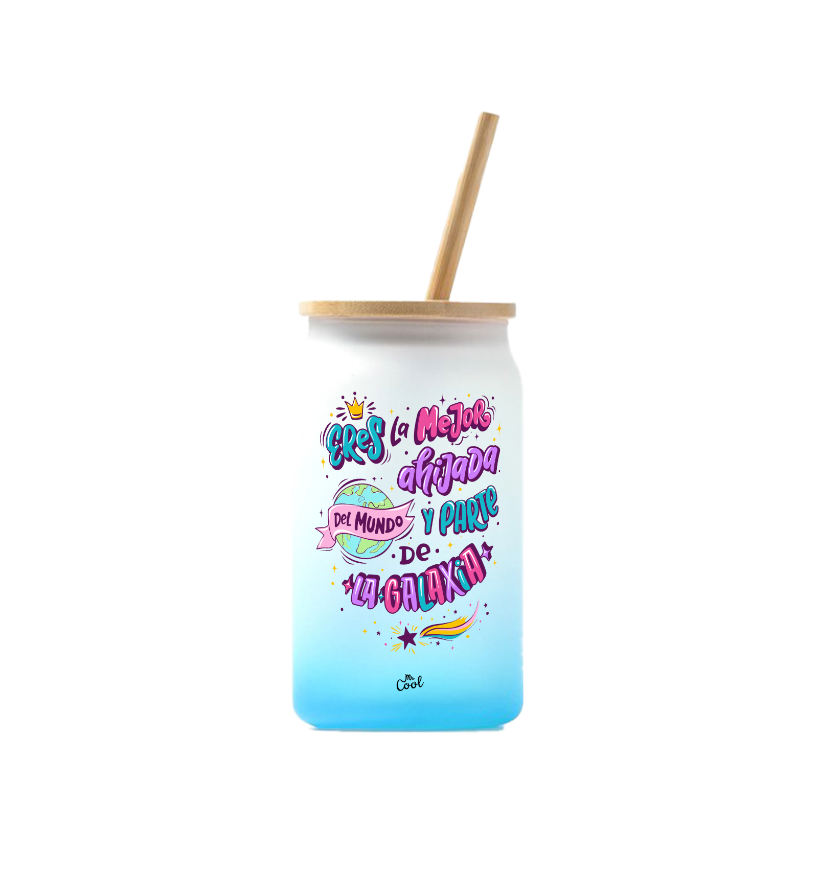 Vaso de cristal degradado de 350ml con frases marca Mr. Cool.