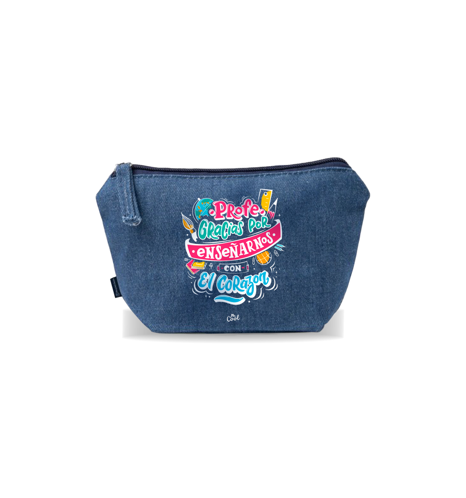 Neceser con frases originales marca Mr. Cool, fabricado en vaquero reciclado de 320 gr/m², tacto suave.