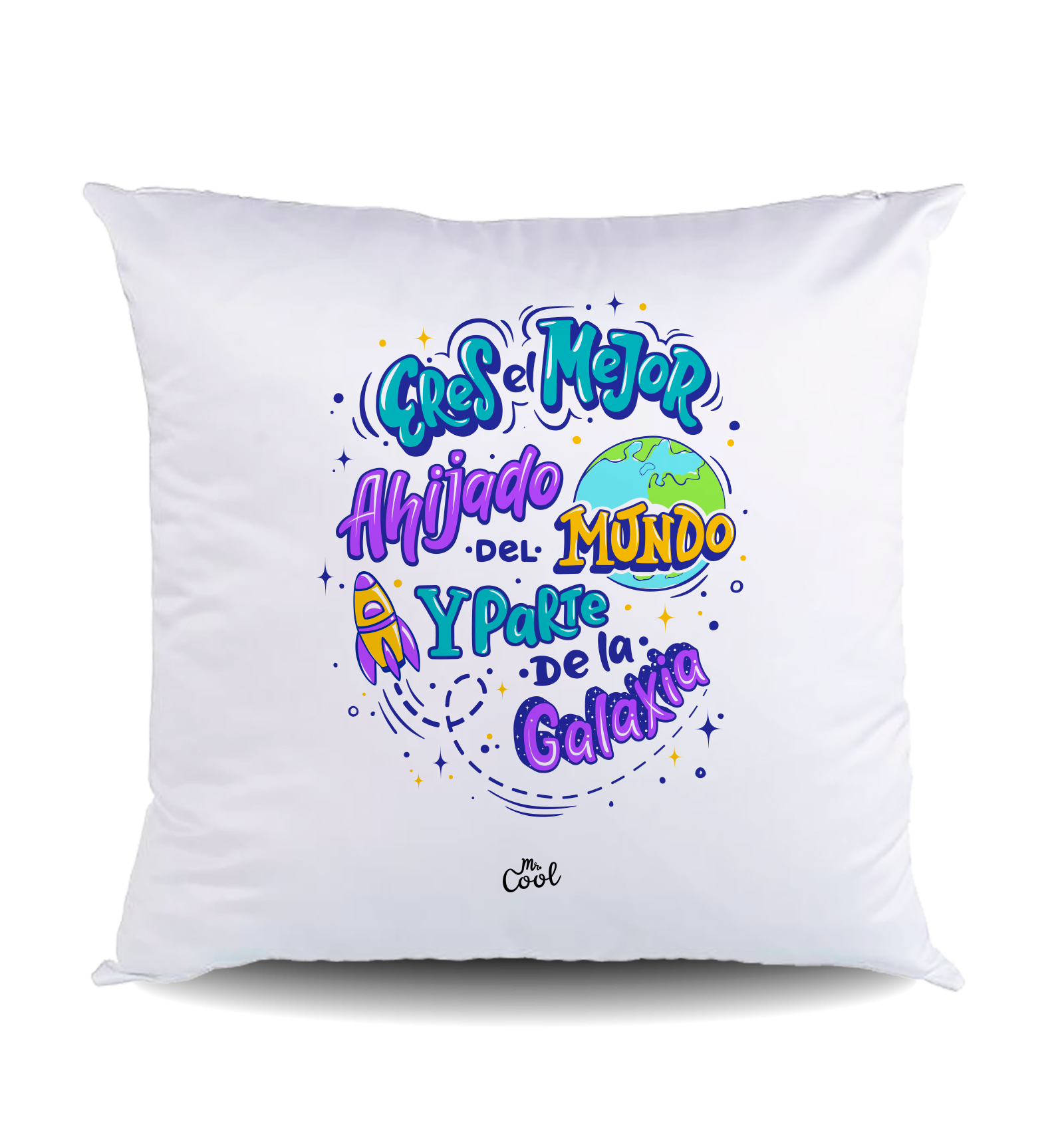 Cojín cuadrado con frases originales marca Mr. Cool, fabricado en España.