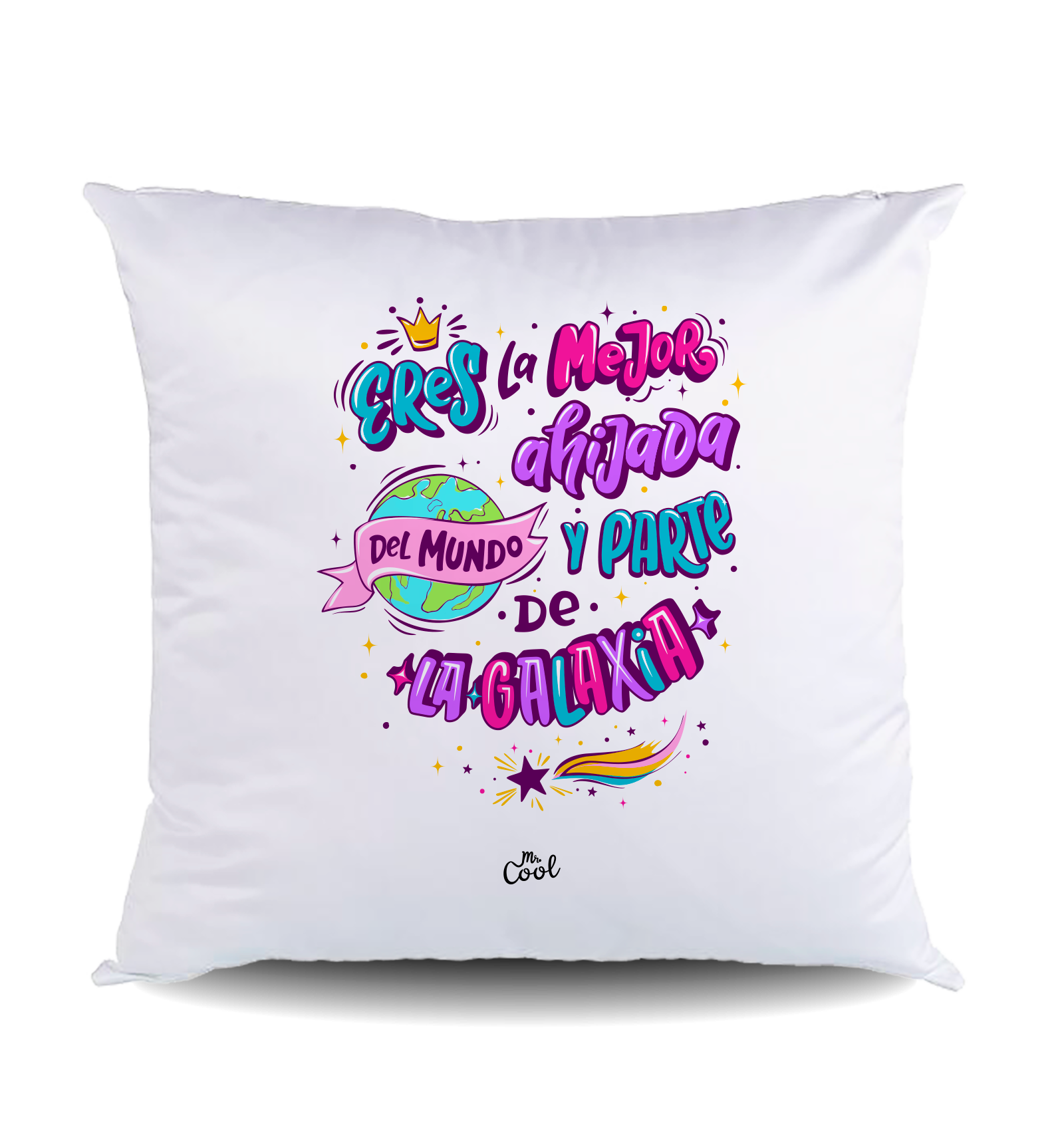 Cojín cuadrado con frases originales marca Mr. Cool, fabricado en España.