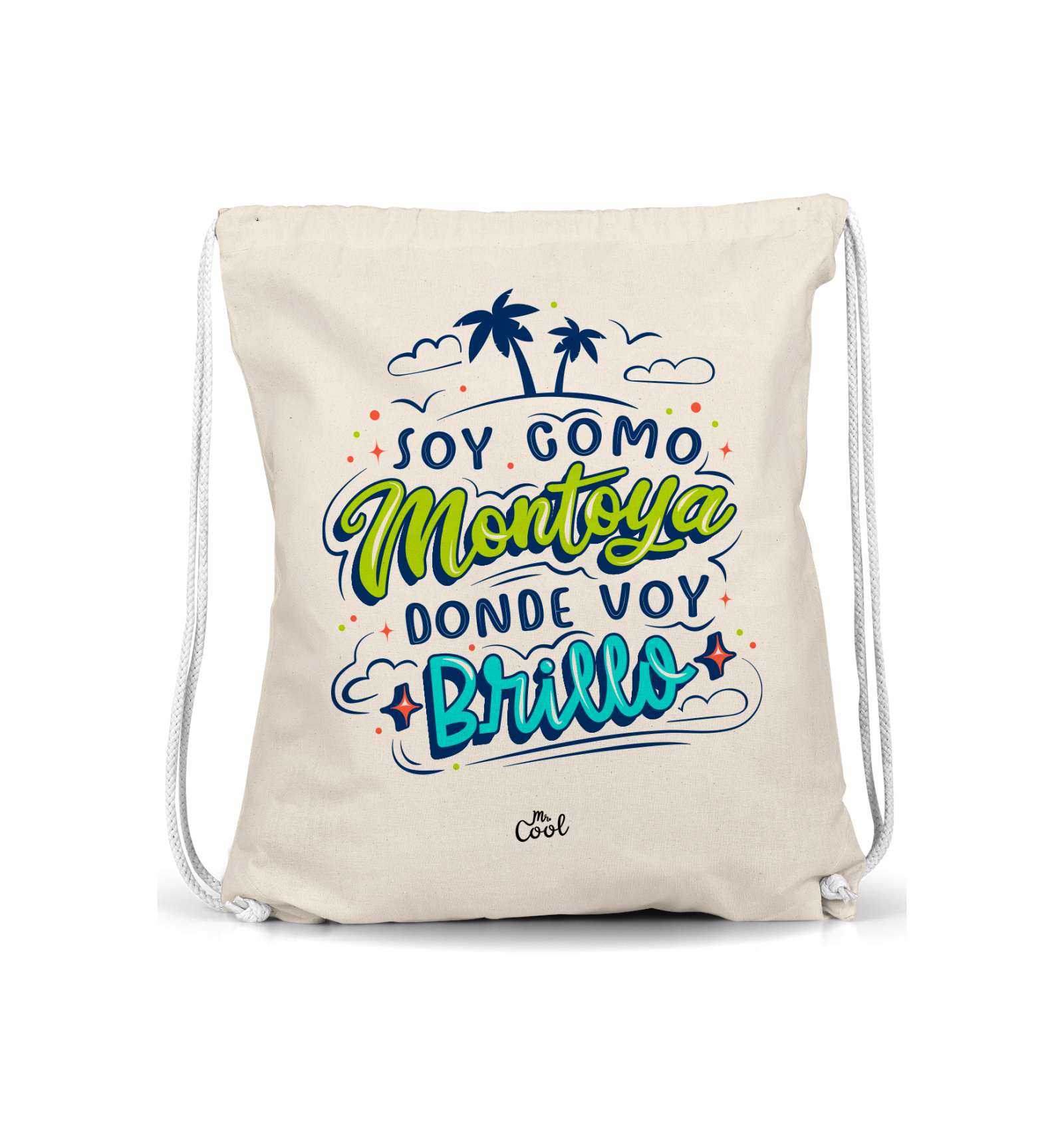 Mochila Saco con frases originales marca Mr. Cool, fabricado en 100% poliester tipo lino, tacto suave.