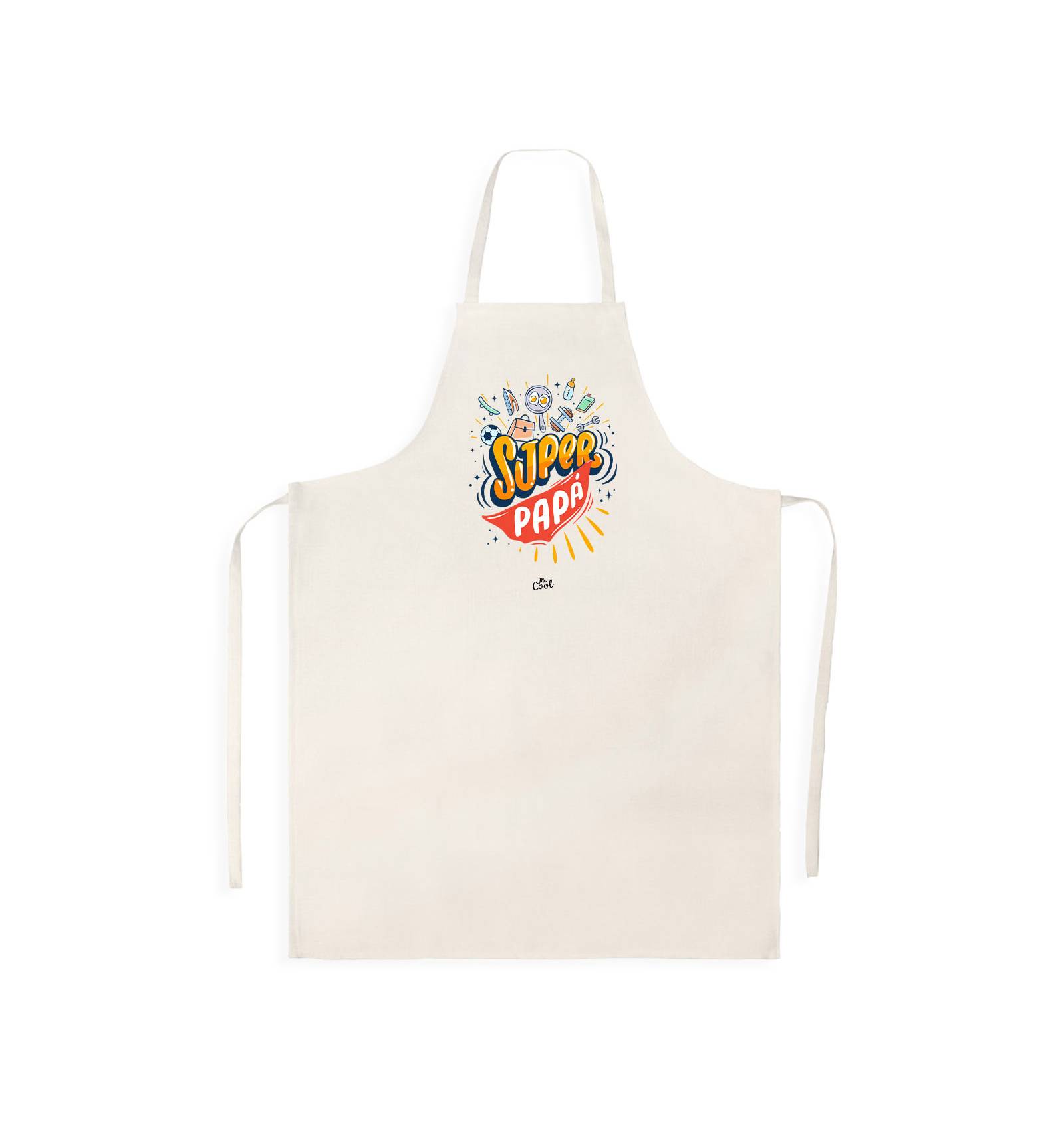 Delantal fabricado en tipo lino con frases originales marca Mr. Cool, fabricado en 100% poliester tipo lino, tacto suave.