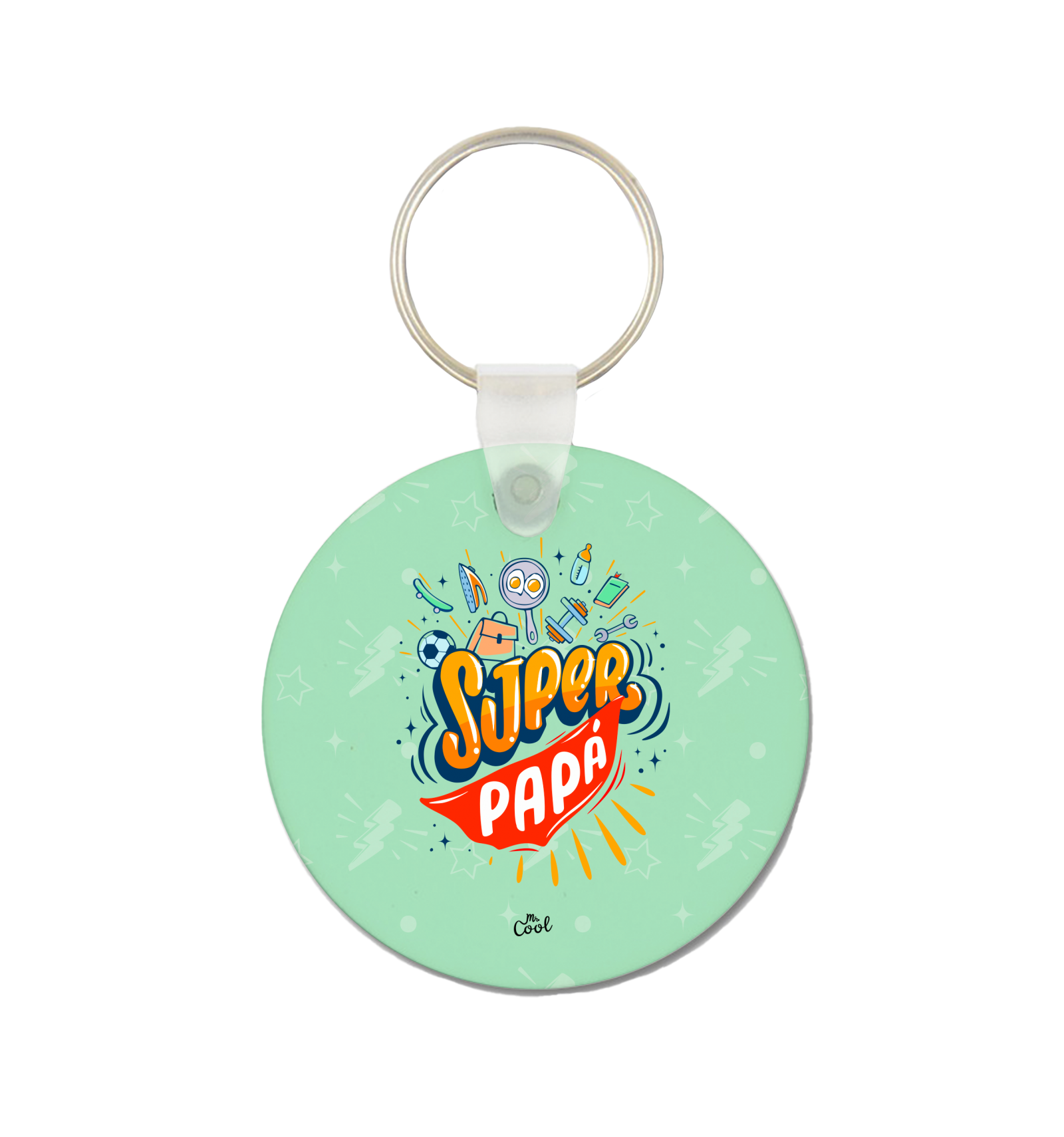 Pack de 5 llaveros circulares con frases originales marca Mr. Cool, fabricado en España.