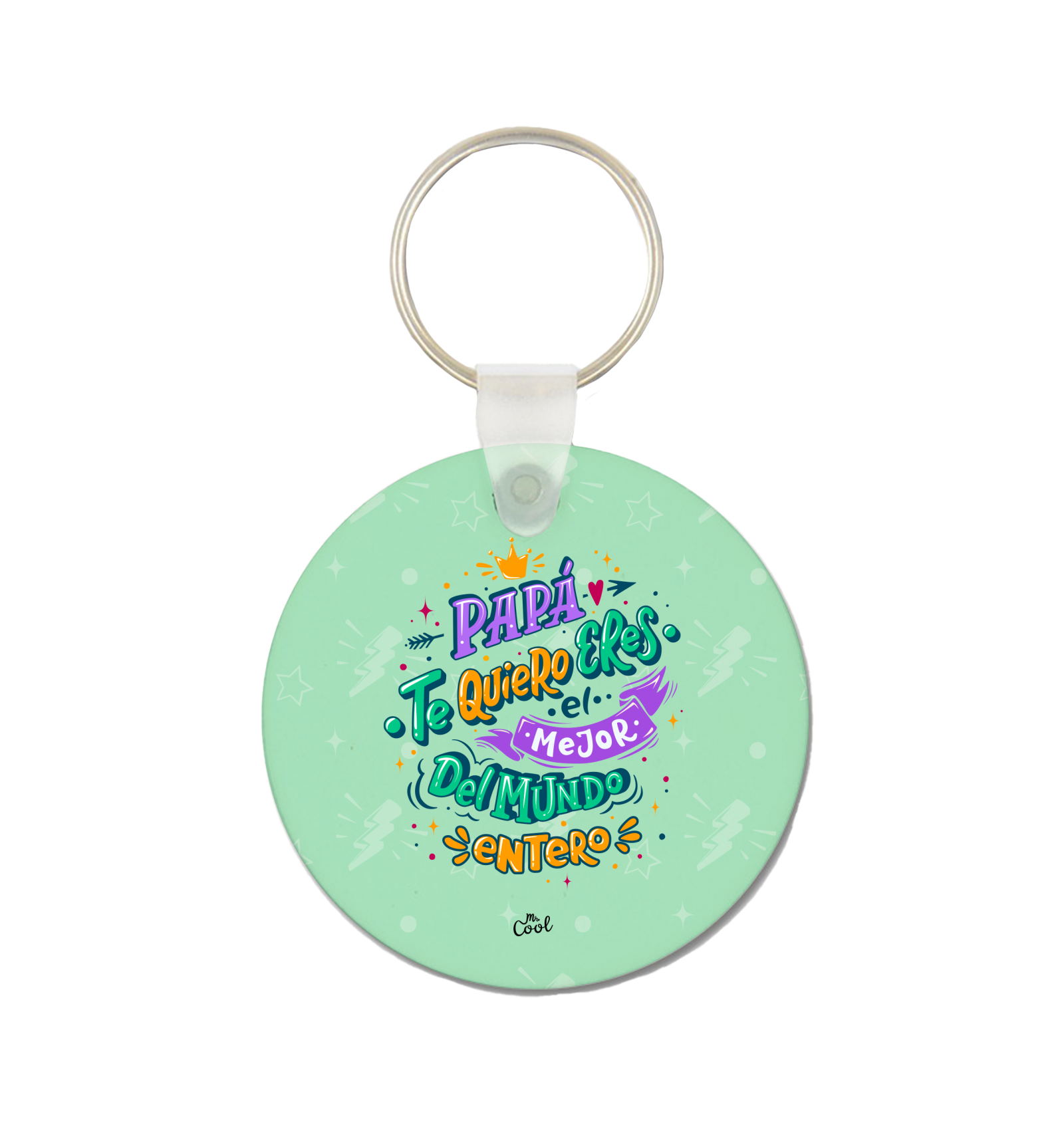 Pack de 5 llaveros circulares con frases originales marca Mr. Cool, fabricado en España.