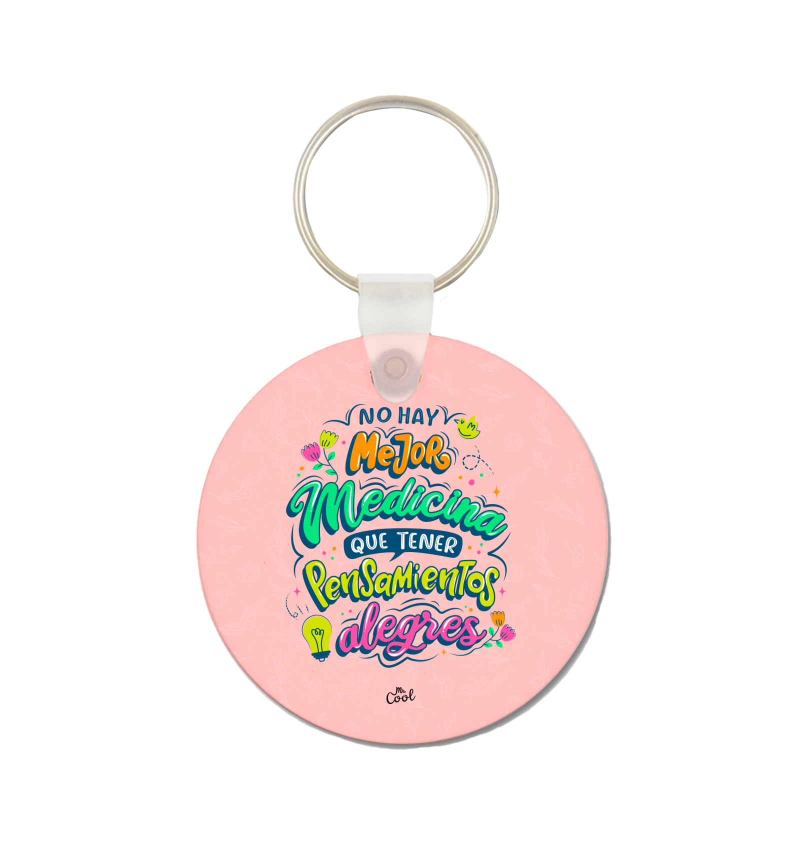 Pack de 5 llaveros circulares con frases originales marca Mr. Cool, fabricado en España.