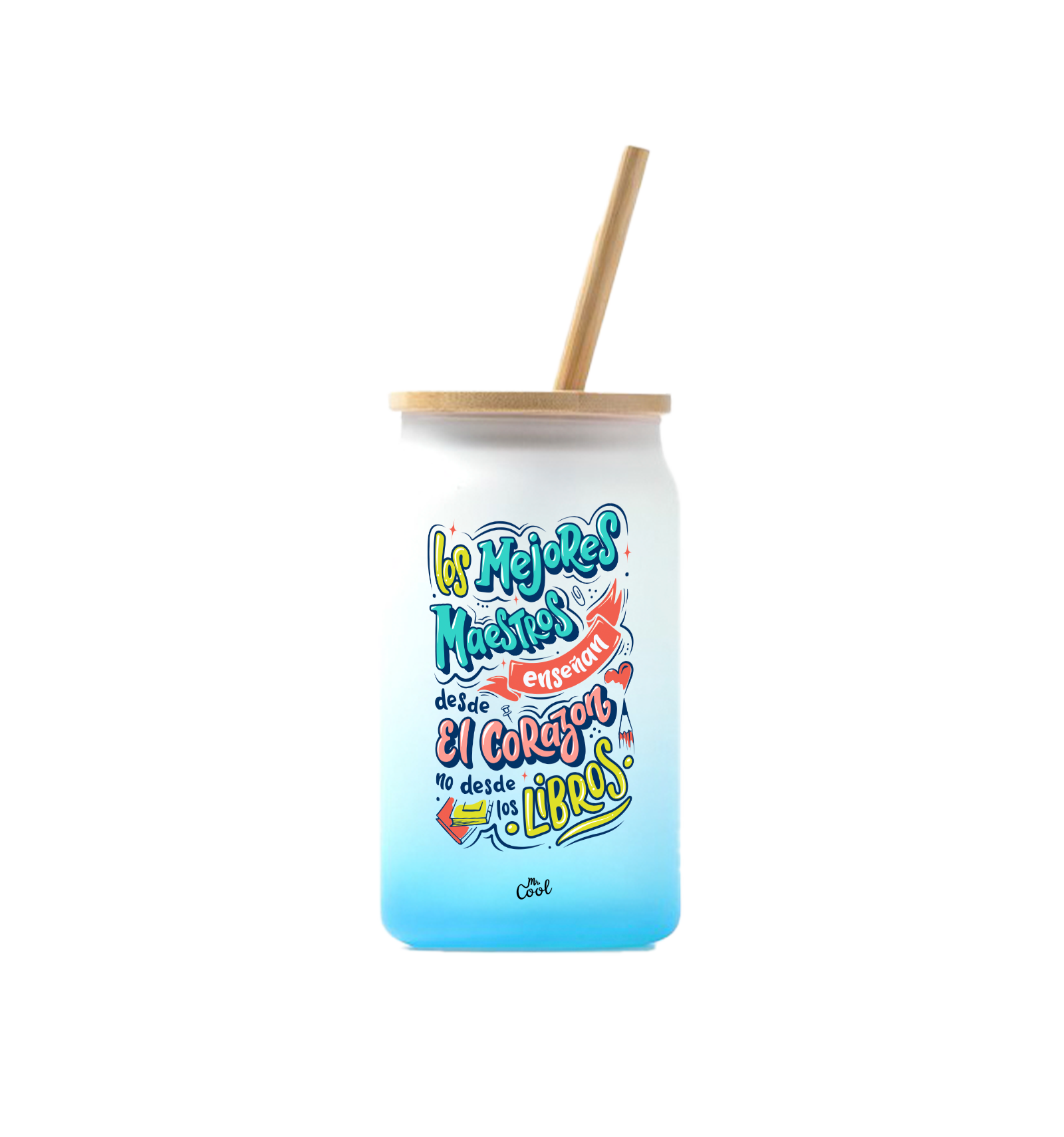 Vaso de cristal degradado de 350ml con frases marca Mr. Cool.