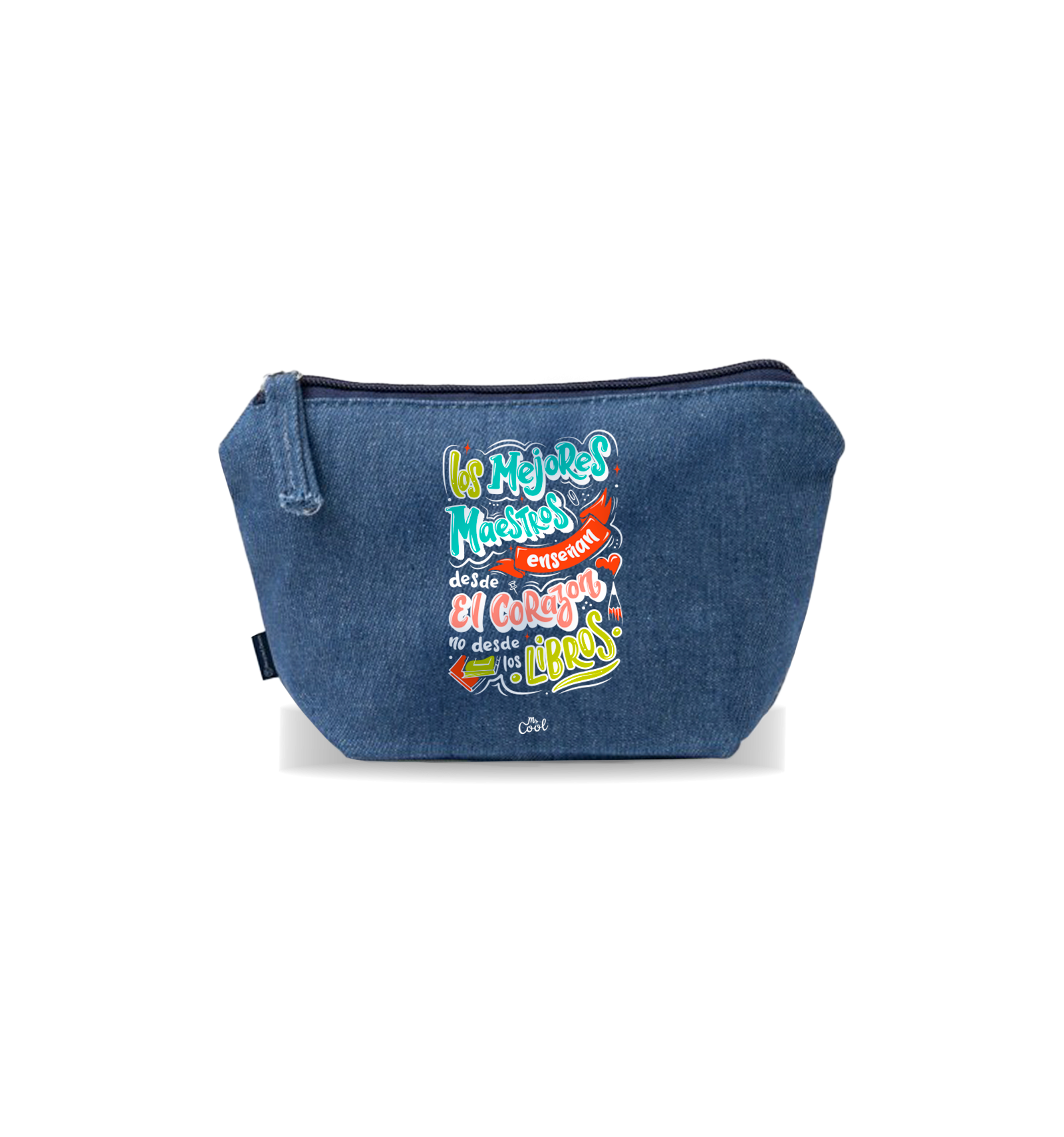 Neceser con frases originales marca Mr. Cool, fabricado en vaquero reciclado de 320 gr/m², tacto suave.