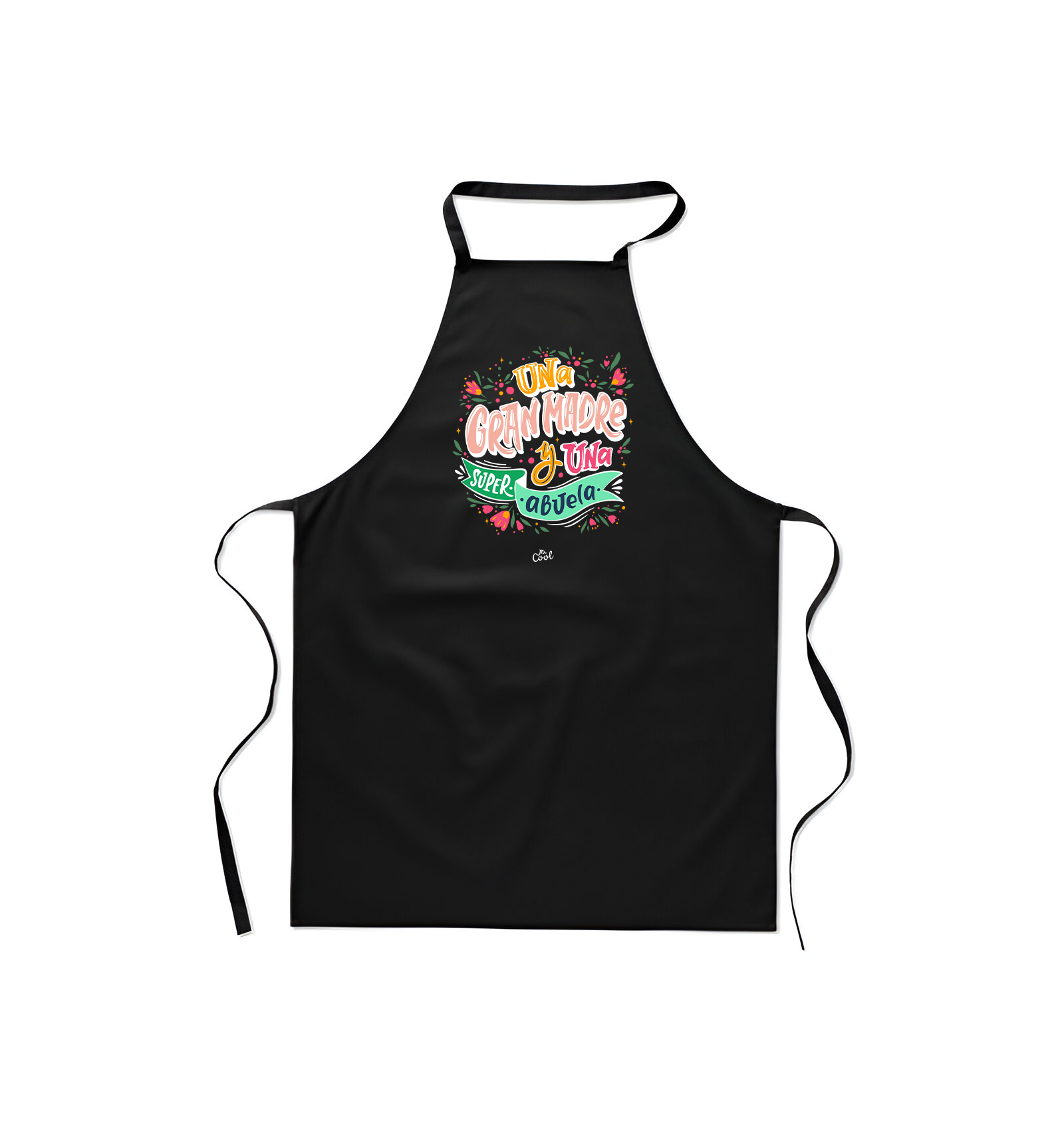 Delantal negro con frases originales marca Mr. Cool, fabricado en 80% poliester 20% algodon.