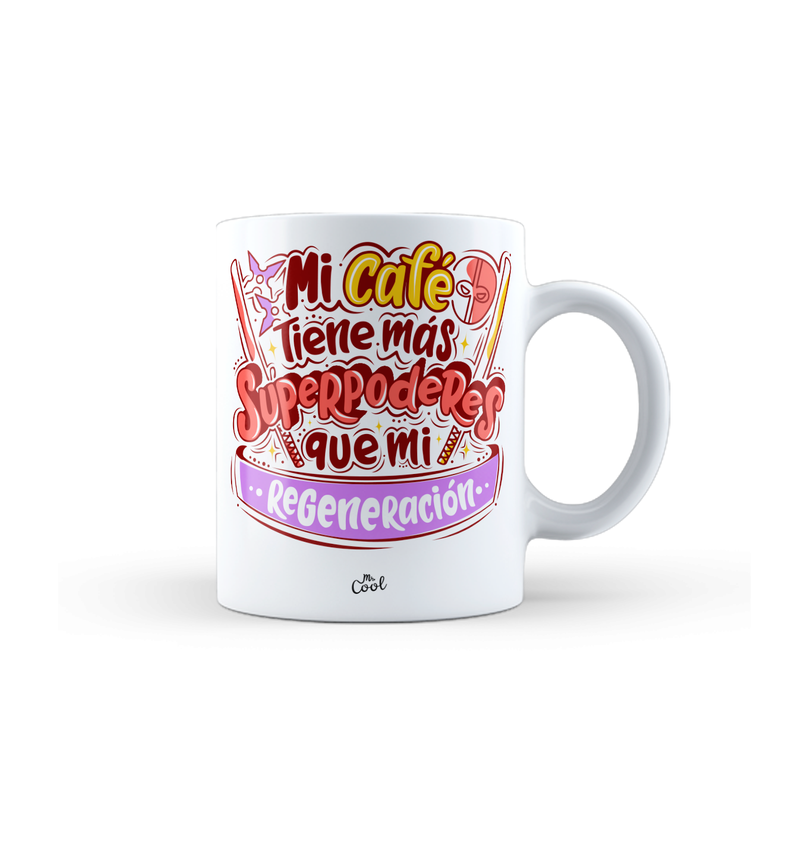 Taza con frases originales marca Mr. Cool, en cerámica de alta calidad y blanco brillante, apta para el microondas y el lavavajillas.