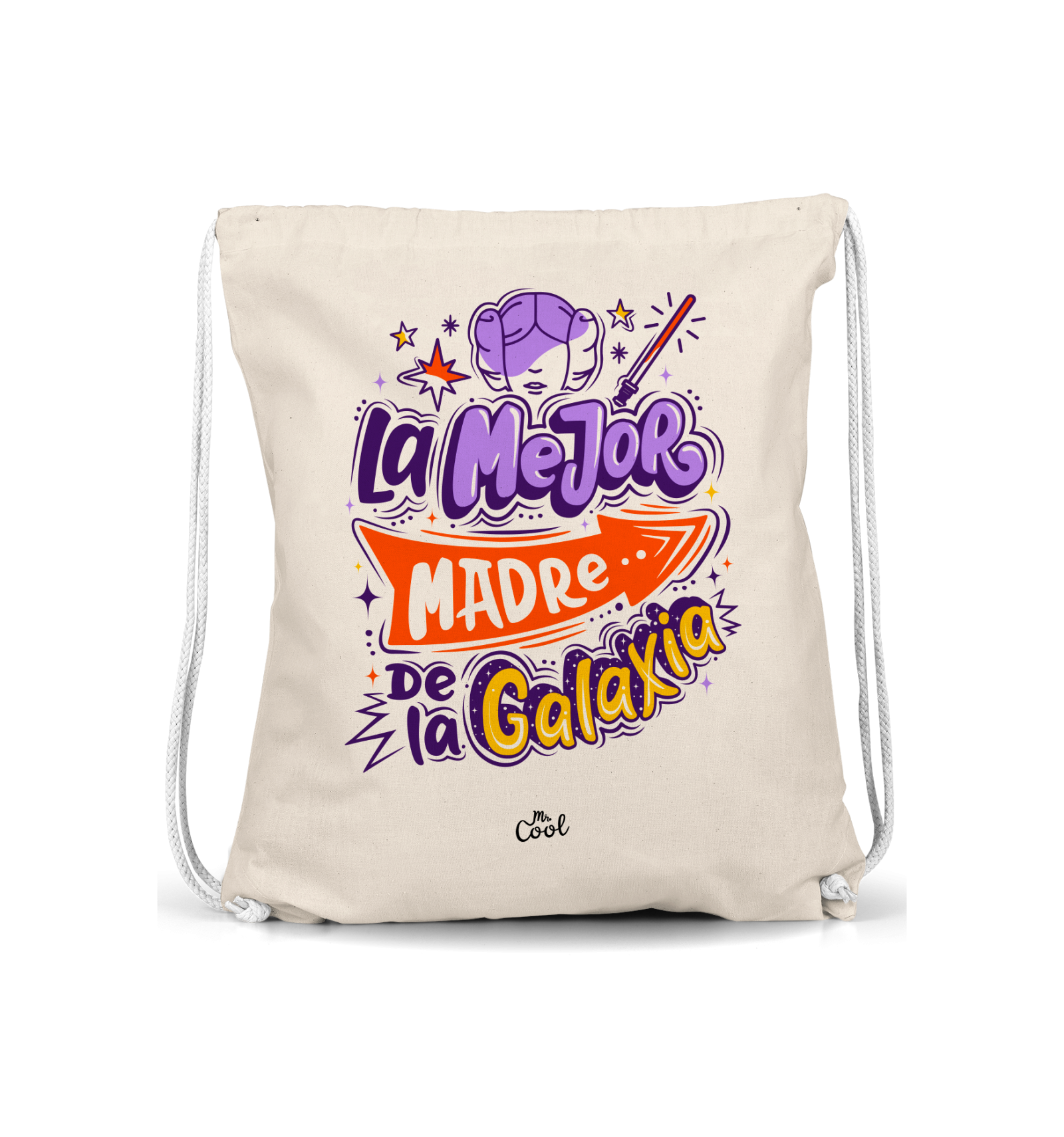 Mochila Saco con frases originales marca Mr. Cool, fabricado en 100% poliester tipo lino, tacto suave.