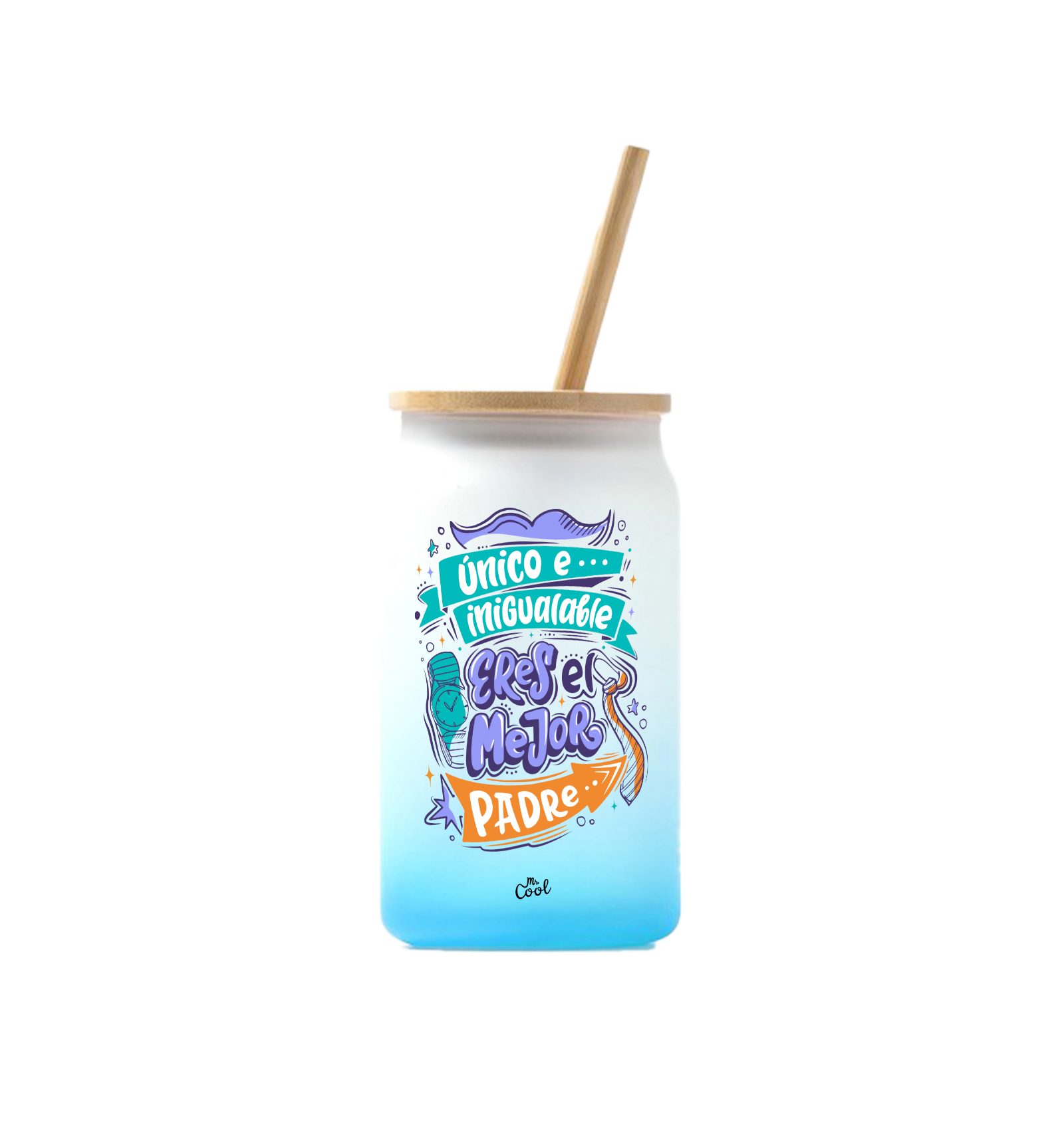 Vaso de cristal degradado de 350ml con frases marca Mr. Cool.