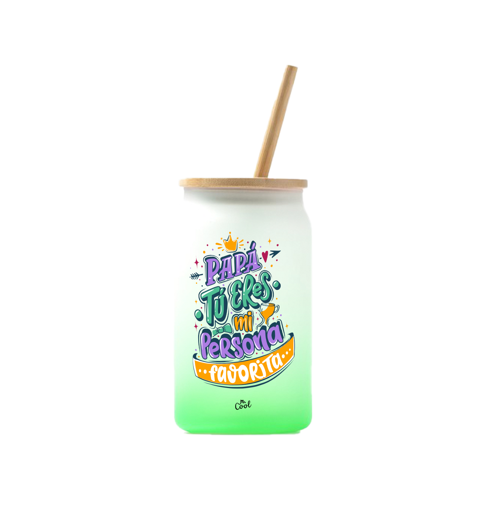 Vaso de cristal degradado de 350ml con frases marca Mr. Cool.