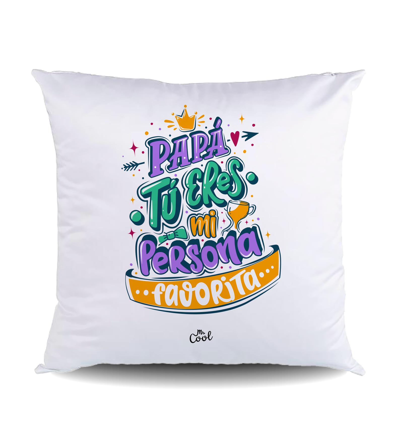 Cojín cuadrado con frases originales marca Mr. Cool, fabricado en España.