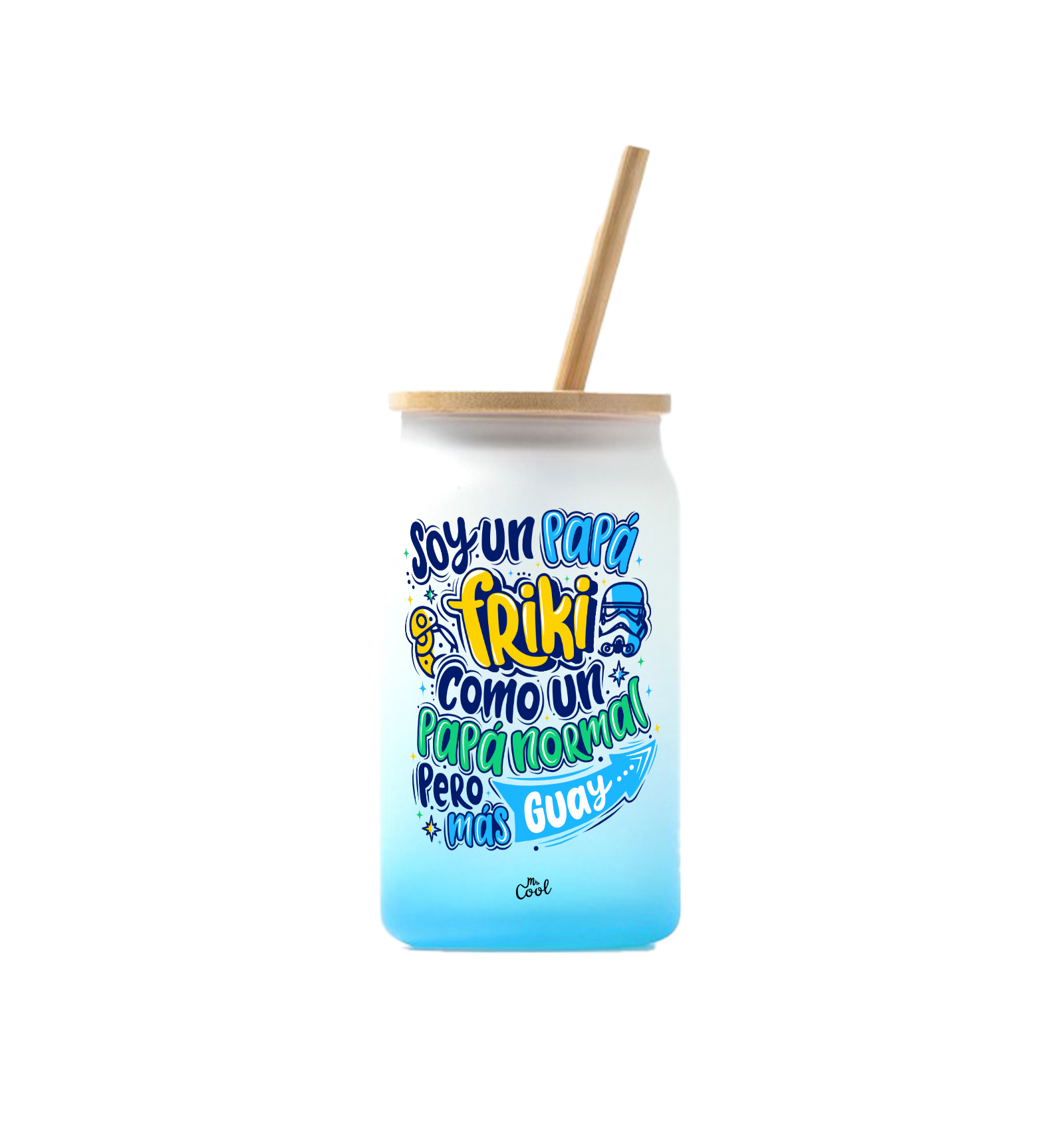 Vaso de cristal degradado de 350ml con frases marca Mr. Cool.