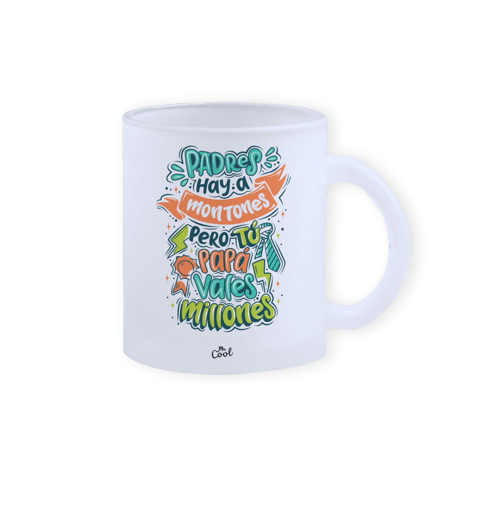 Taza cristal opaco o esmerilado con frases originales marca Mr. Cool, apta para microondas y lavavajillas. Y podrás meter la taza sin liquidos en el congelador para tener bebidas muy frias.