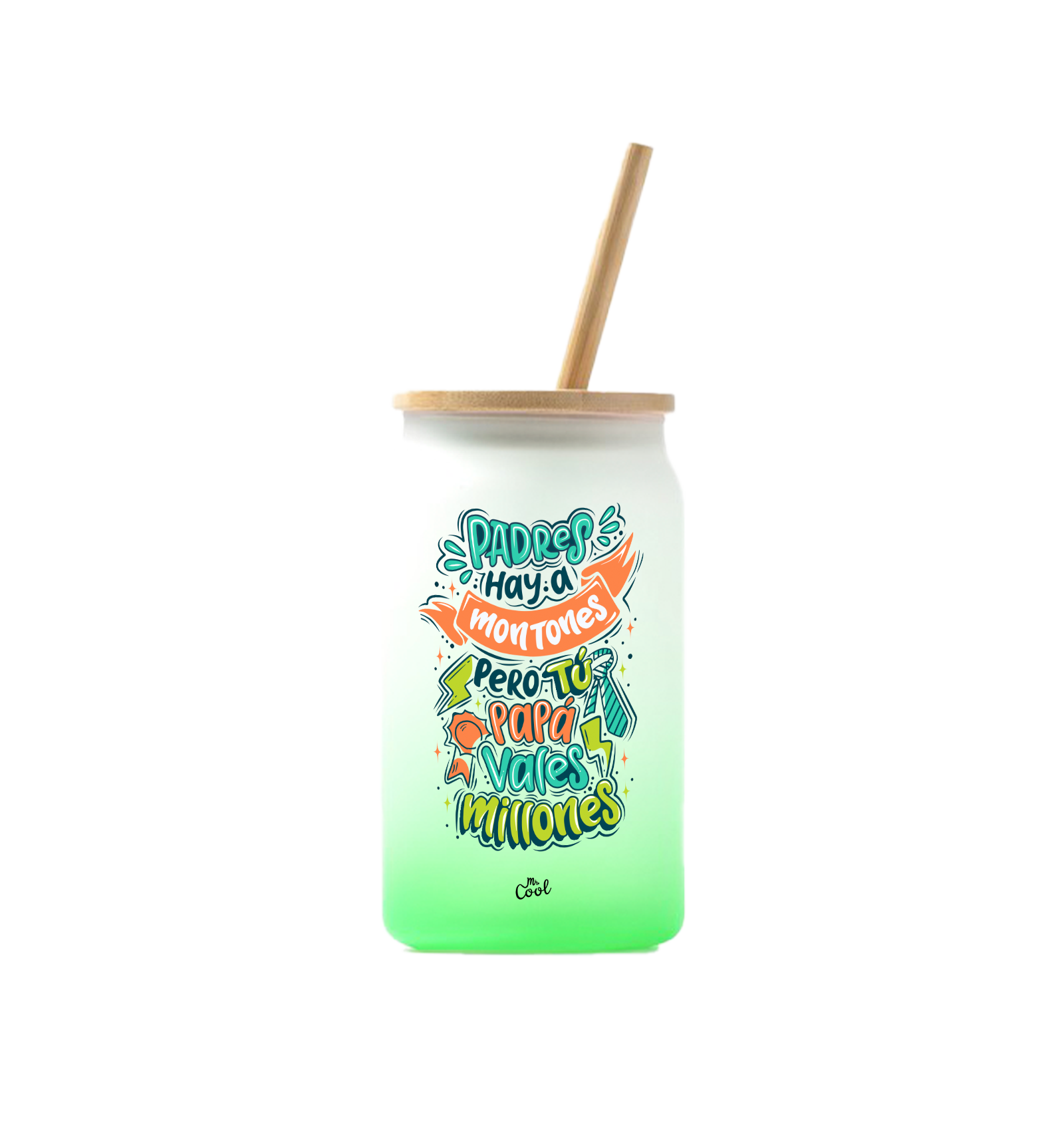 Vaso de cristal degradado de 350ml con frases marca Mr. Cool.