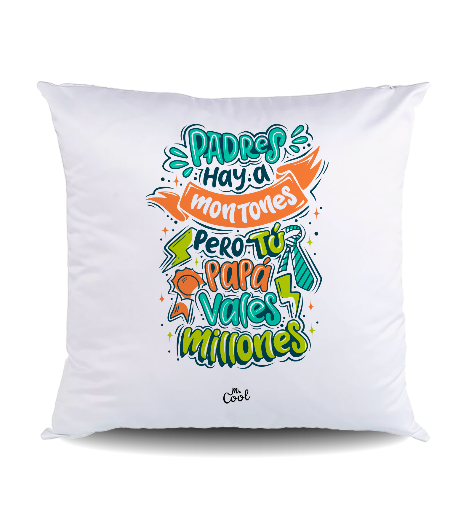 Cojín cuadrado con frases originales marca Mr. Cool, fabricado en España.